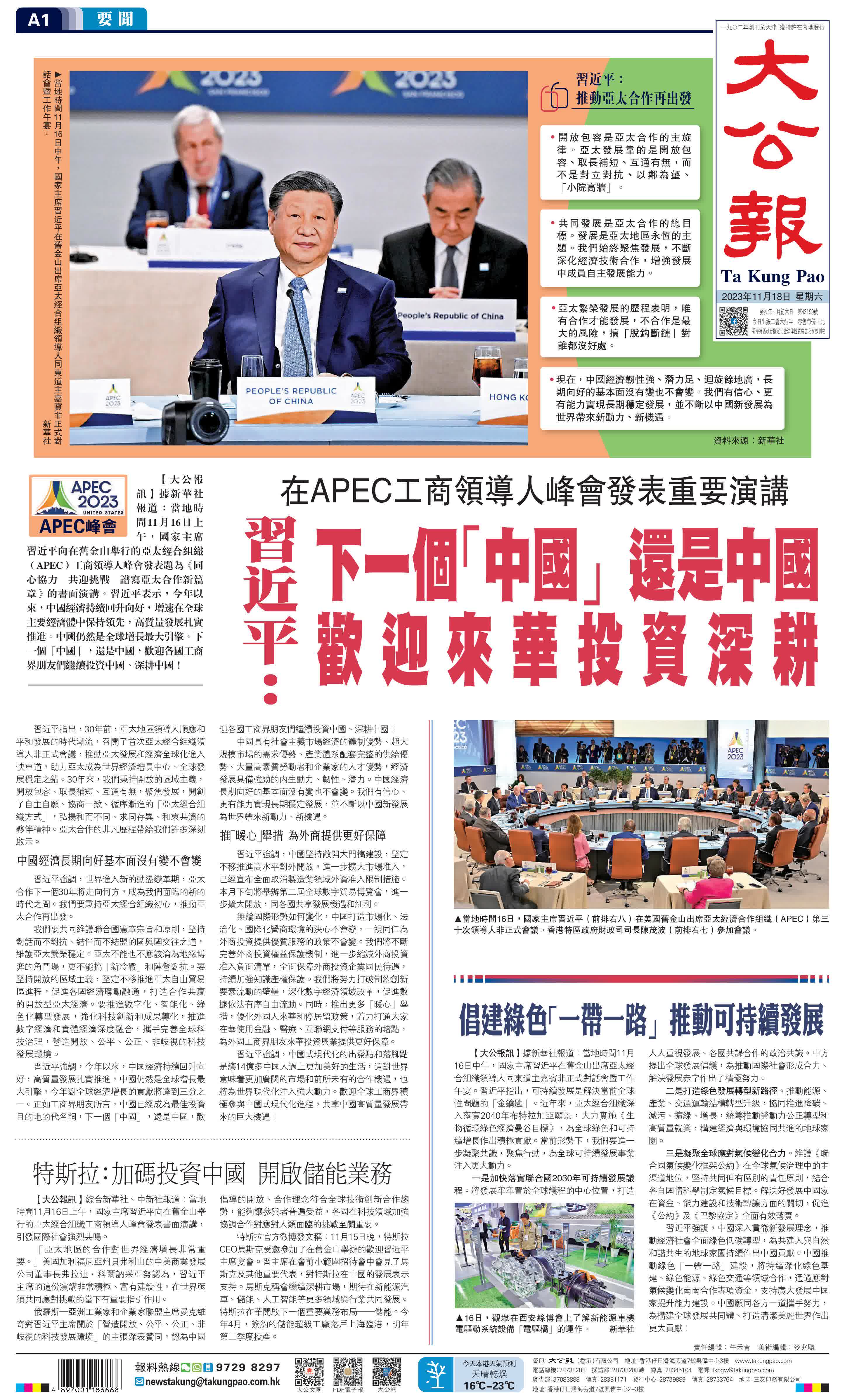 (來源:大公報A1:要聞 2023/11/18)