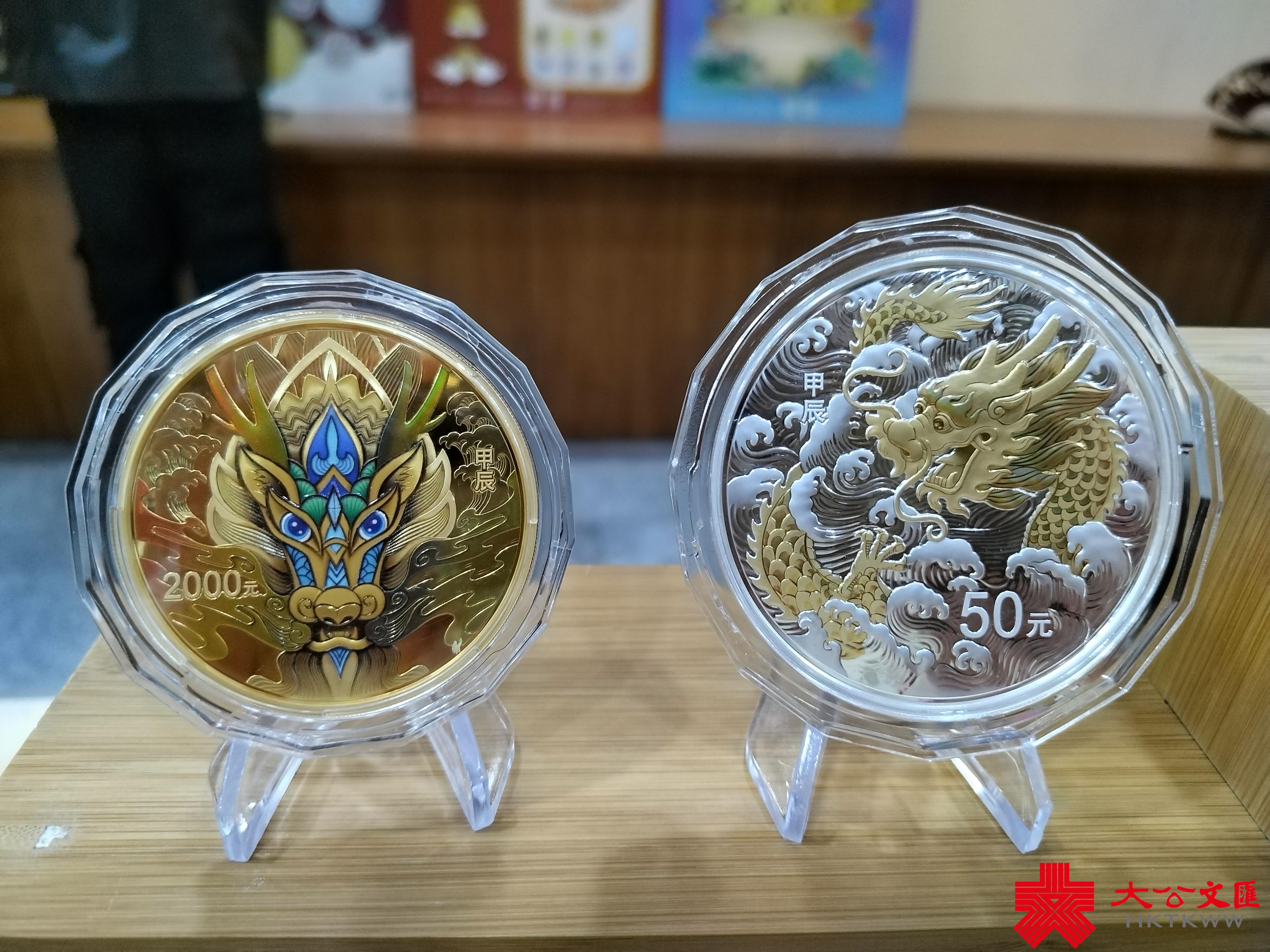 記者從17日舉行的2024龍年生肖幣媒體品鑒會了解到,生肖系列貴金屬紀念幣是我國自1981年始的重要延續項目,此次發行的12枚龍年生肖紀念幣均為精製幣,含純金、純銀、純鉑,成色均為99.9%。12枚紀念幣融合傳統工藝與創新技術,正面圖案均為中華人民共和國國徽,襯以中國傳統吉祥紋飾,並刊國名、年號,背面圖案均不相同,祥雲、梅花等圖案極具中國特色。10公斤圓形金質紀念幣直徑180毫米,面額100000元,最大發行量18枚,背面圖案為龍造型,襯以祥雲組合設計。