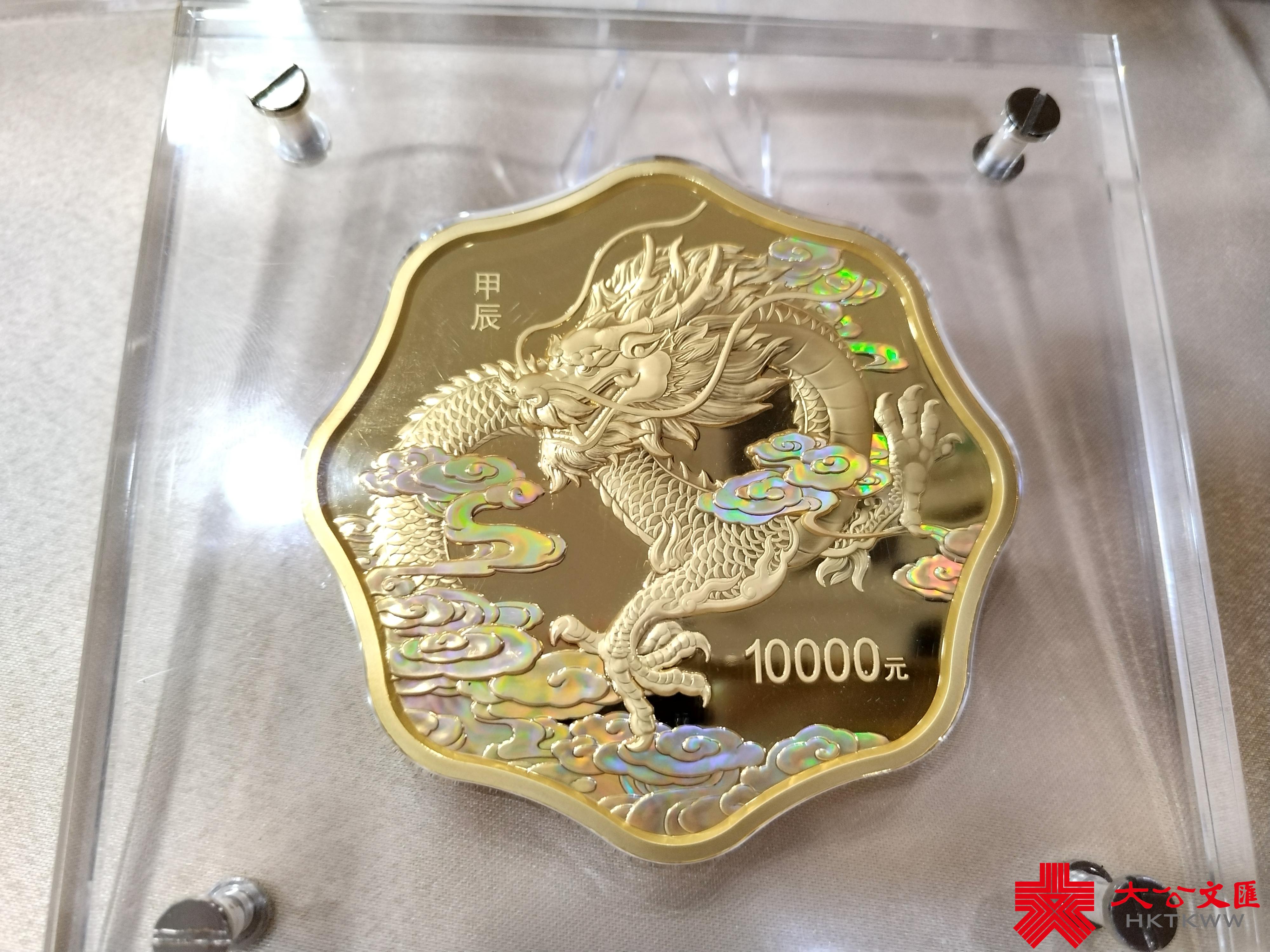 (大公文匯網記者 馬曉芳 北京報道)中國人民銀行17日發行2024中國甲辰(龍)年貴金屬紀念幣一套。該套紀念幣共12枚,包括金質紀念幣7枚,銀質紀念幣4枚,鉑質紀念幣1枚,均為中華人民共和國法定貨幣。紀念幣設計以龍的形象為核心,背面圖案配以梅花、祥雲等吉祥圖紋。面額10萬元的10公斤圓形金幣最大發行量僅為18枚,面額5元的15克圓形銀幣最大發行量為30萬枚。