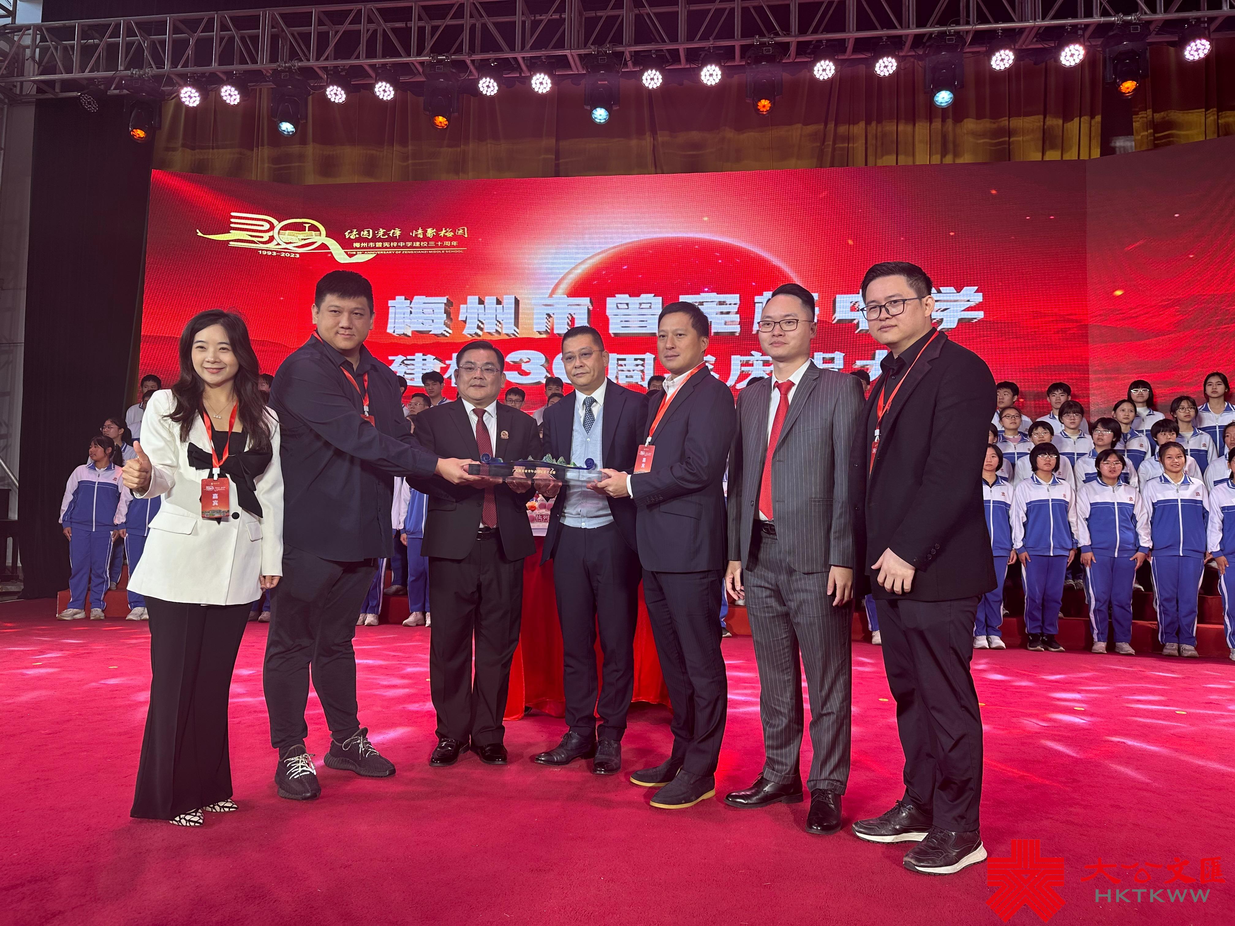 曾智明憶述說,他30年前就跟着父親到梅州,看着曾憲梓中學一點點建設起來。30年春風化雨,不少校友都成為行業的佼佼者,開始回饋社會,參與學校的建設發展,父親熱心教育的精神由此薪火相傳。他續說,此番也特意把自己的孩子們帶到現場,就是希望他們繼承爺爺愛國愛港的思想,未來也能繼續做對祖國建設發展有貢獻的人。