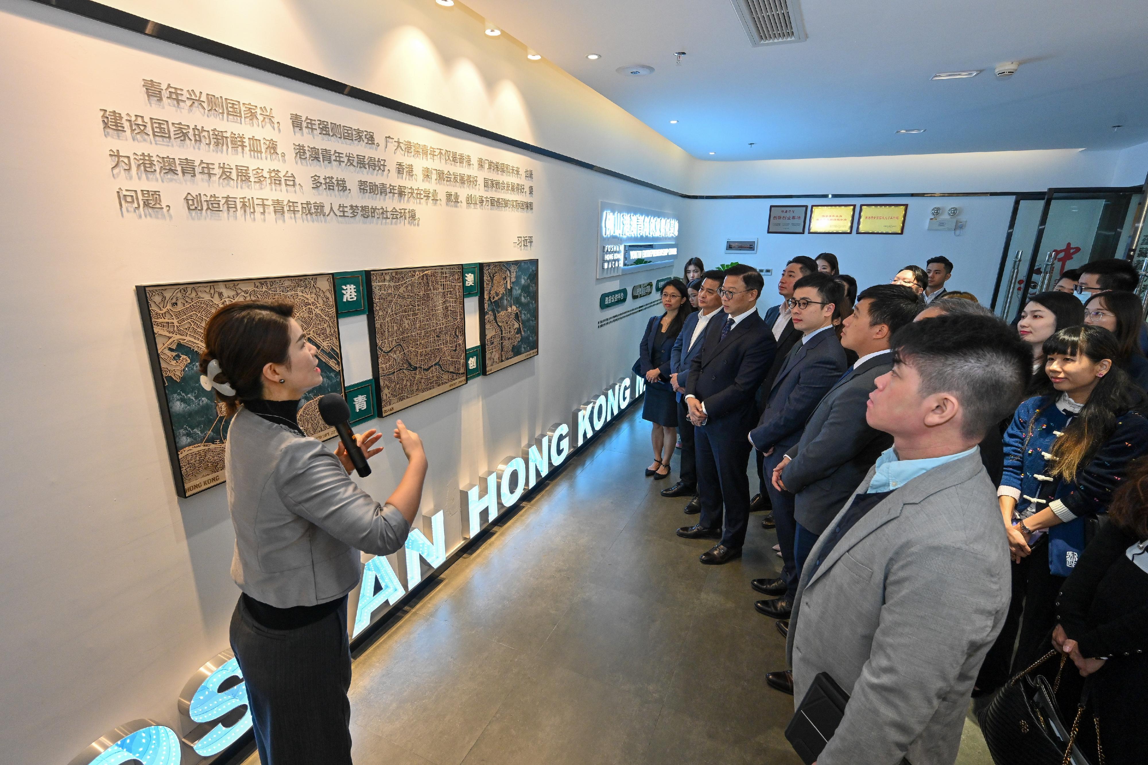 早上,張國鈞一行先到佛山港澳青年創業孵化基地,與港澳青創企業代表交流,從他們分享創業的經驗中,加深了解粵港澳大灣區發展為香港作為法律及爭議解決服務中心所帶來的機遇。該基地旨在協助港澳青年抓緊大灣區城市的機遇,營運至今孵化不少港澳青年創業項目,為大灣區高品質發展建設注入新動力。代表團隨後拜訪佛山市律師協會,並與佛山市司法局黨組書記、局長劉祖輝會面,探討香港法律業界在大灣區執業的機遇及挑戰,以及了解香港大灣區律師與內地律師在處理各類涉外案件上的協作。