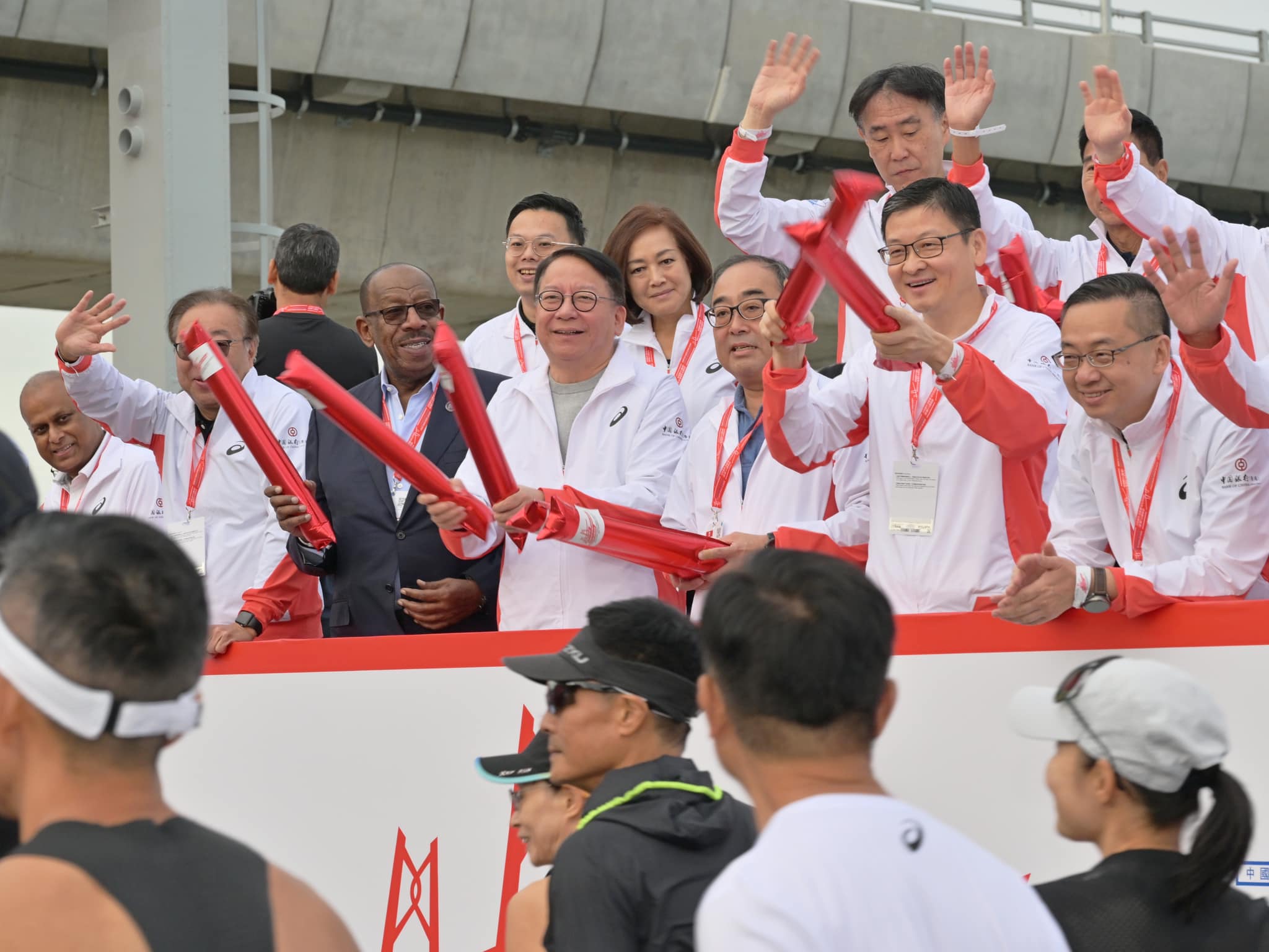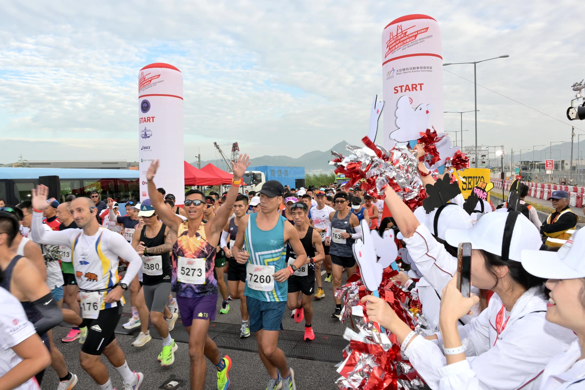 大公文匯全媒體報道,由中國銀行﹙香港﹚冠名贊助、中國香港田徑總會主辦「中國銀行(香港)港珠澳大橋香港段半馬拉松」今日(19日)舉行。今早5時許,不少跑手已在亞洲國際博覽館集合,登上大會專車到香港口岸準備起步。挑戰組賽事於早上7時40分開跑,由政務司司長陳國基於港珠澳大橋鳴槍主持起跑;其餘兩組半馬賽事於8時後分別起跑。