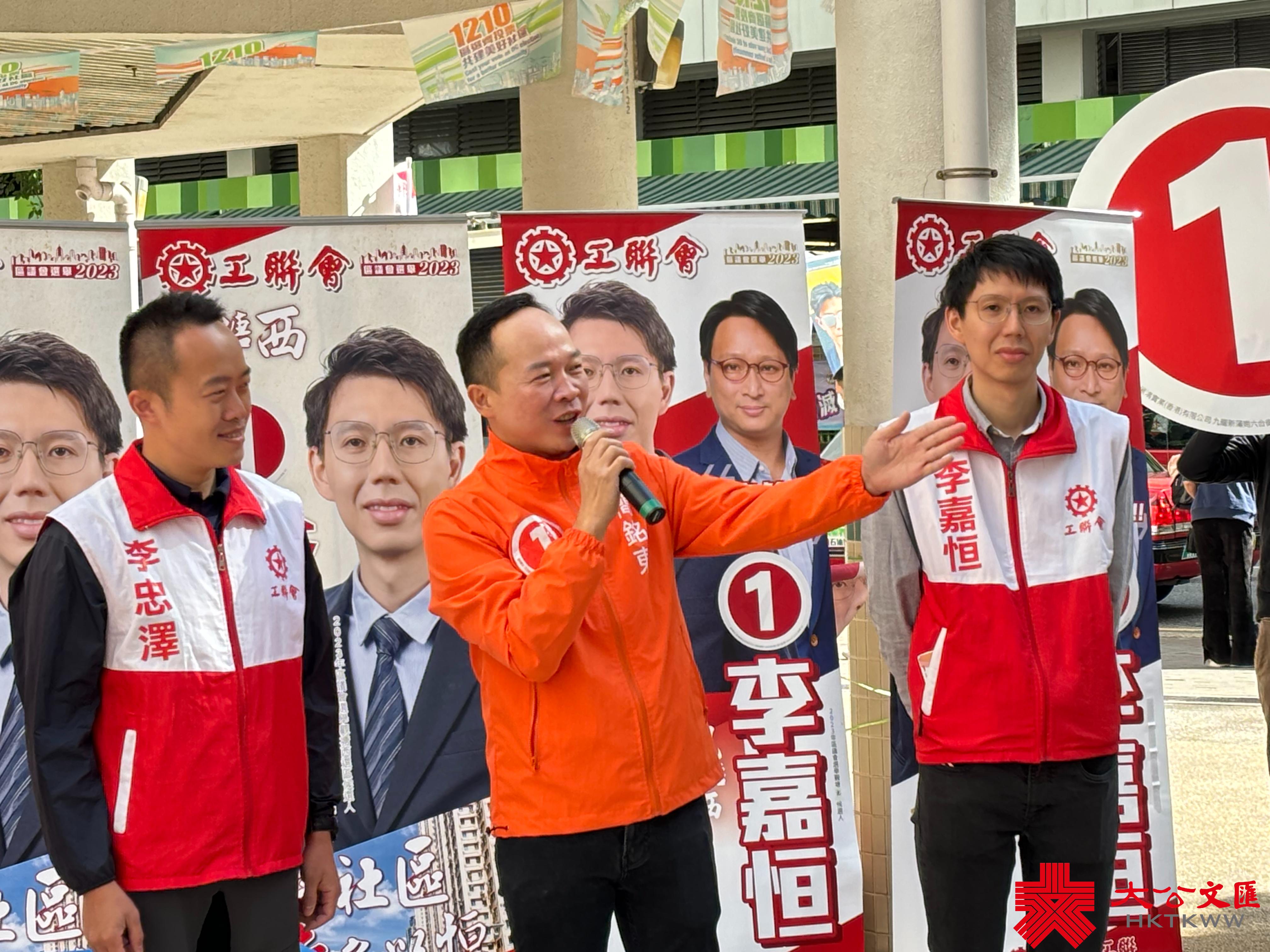 觀塘西候選人李嘉恒服務觀塘區特別是牛頭角一帶已經有10年的時間。他亦是一位新手爸爸。他希望各位街坊給予機會,與大家一起攜手建設更加美好的社區。他承諾會傳承工聯會前輩的精神,秉承工聯會「以人為本」的精神,服務市民走在前。