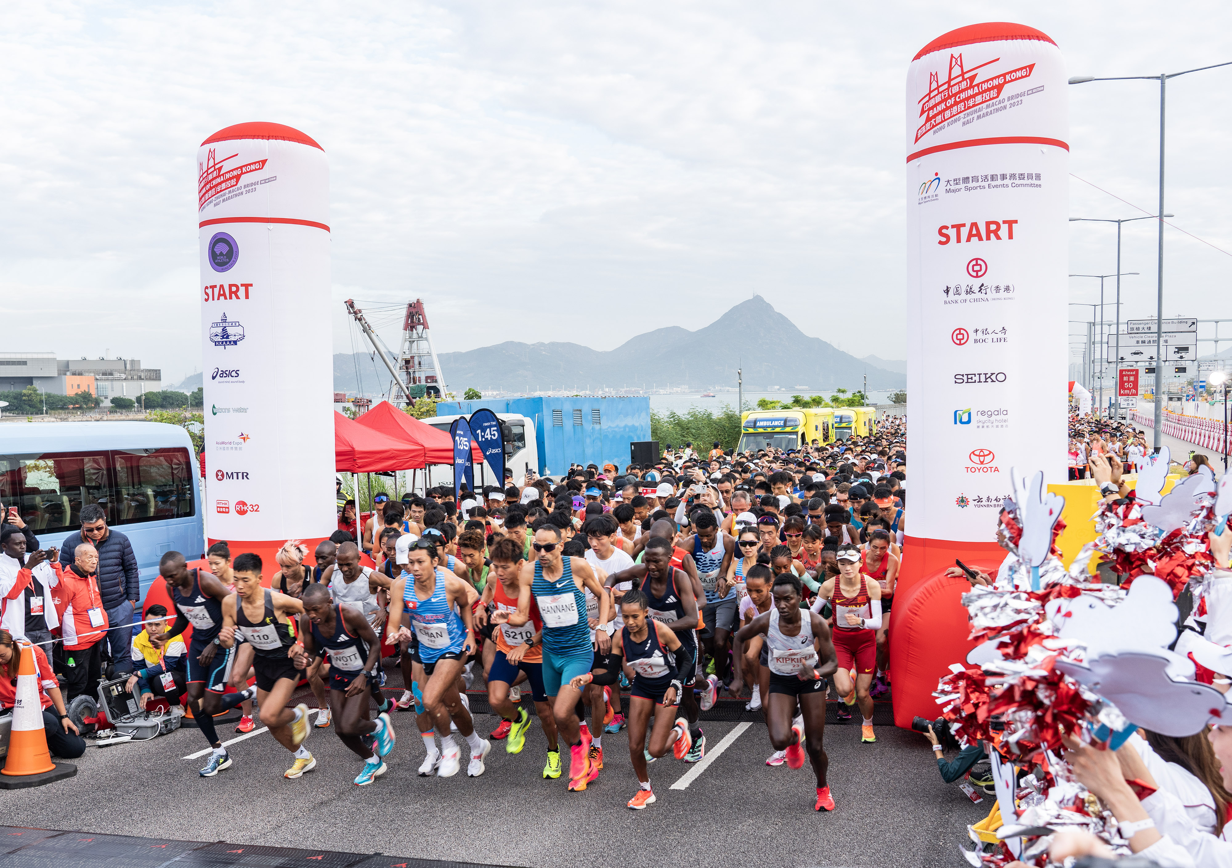 最早起跑的挑戰組賽事於今早7時40分鳴槍開跑,最終由來自肯尼亞及烏干達的選手分別獲得男女子冠軍,而香港長跑運動員紀嘉文成為首名衝線的本地跑手。紀嘉文坦言首次踏足大橋感覺新鮮,今早先到亞博館登記,其後乘專車加上步行一段才抵達起跑點,但理解賽事路段屬禁區範圍。他提到,橋面部分路段的接駁位空隙較大,需要跑者提步跨過以免絆倒,亦見到有跑手扭到,希望大會加以改善,確保參賽者安全。