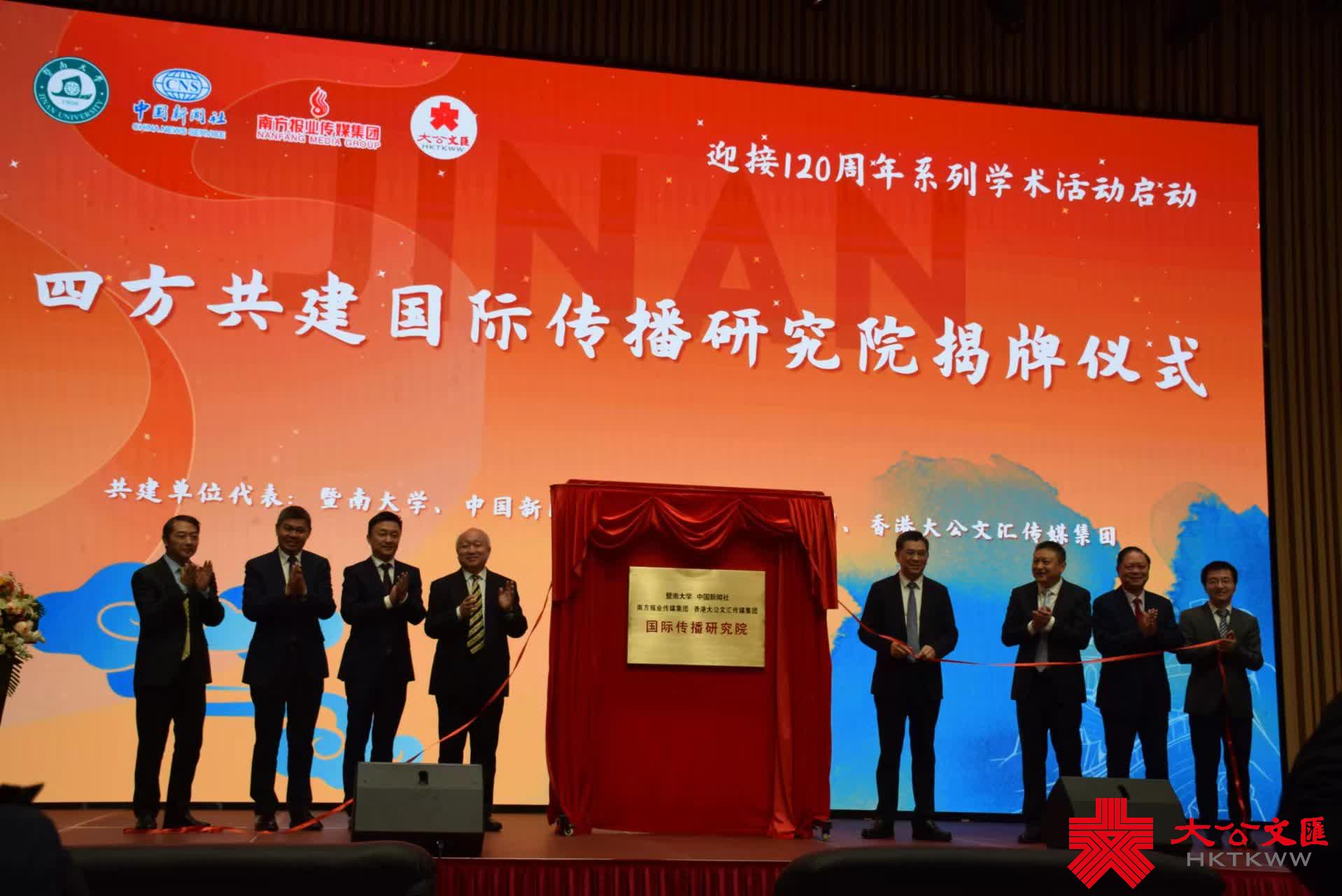 (大公文匯網 記者 盧靜怡 廣州報道)四方共建國際傳播研究院揭牌儀式暨首屆中華文化國際傳播主題論壇11月19日在廣州舉行。由暨南大學、中國新聞社、南方報業傳媒集團、香港大公文匯傳媒集團四方共建的國際傳播研究院正式揭牌。