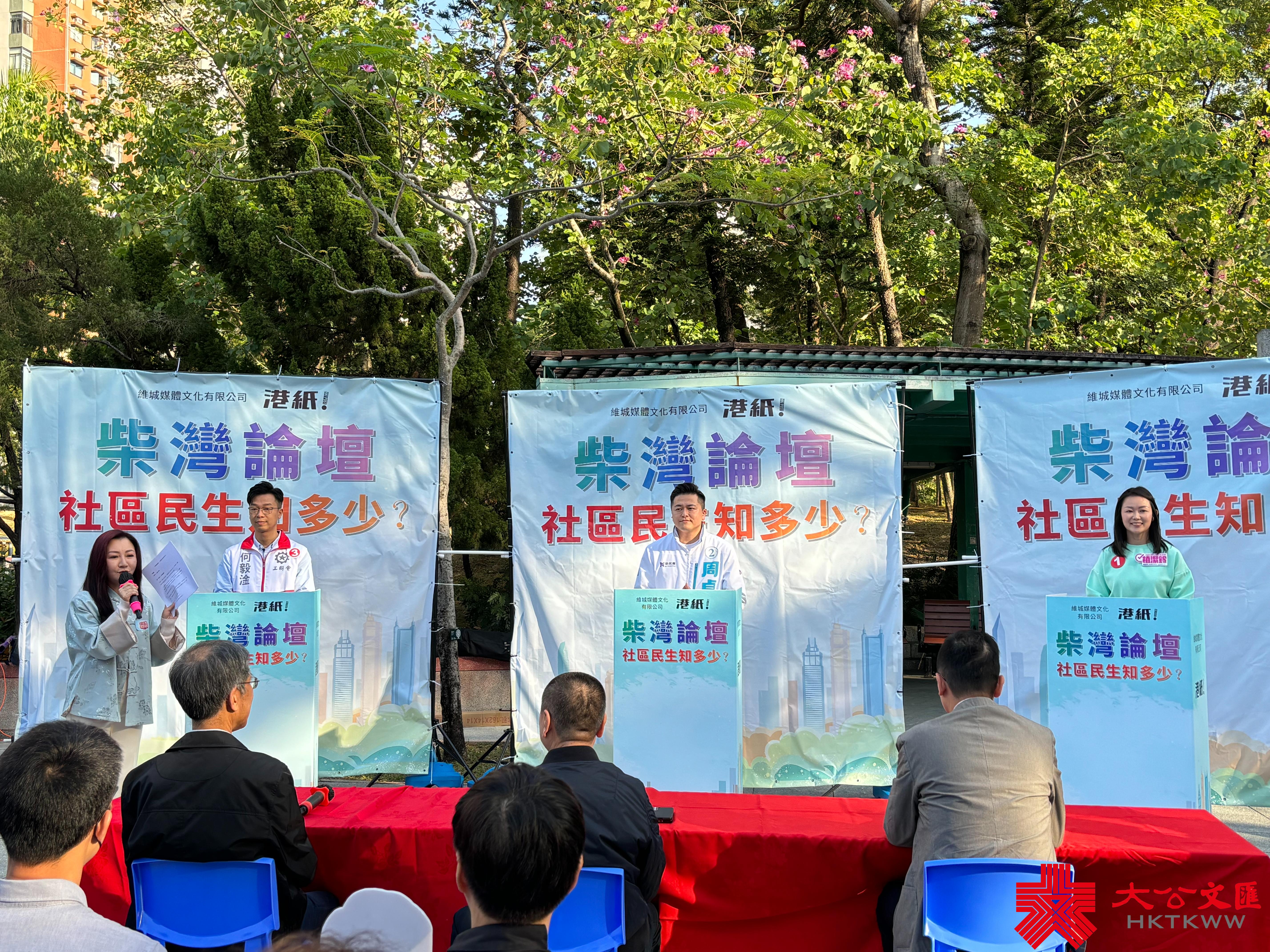 (大公文匯全媒體 記者 李九歌)2023年區議會選舉將於12月10日進行投票。「柴灣論壇 社區民生知多少」今日(19日)下午在柴灣公園舉行。候選人民建聯植潔鈴、新民黨周卓然、工聯會何毅淦及一眾柴灣社區居民和義工參與此次活動。