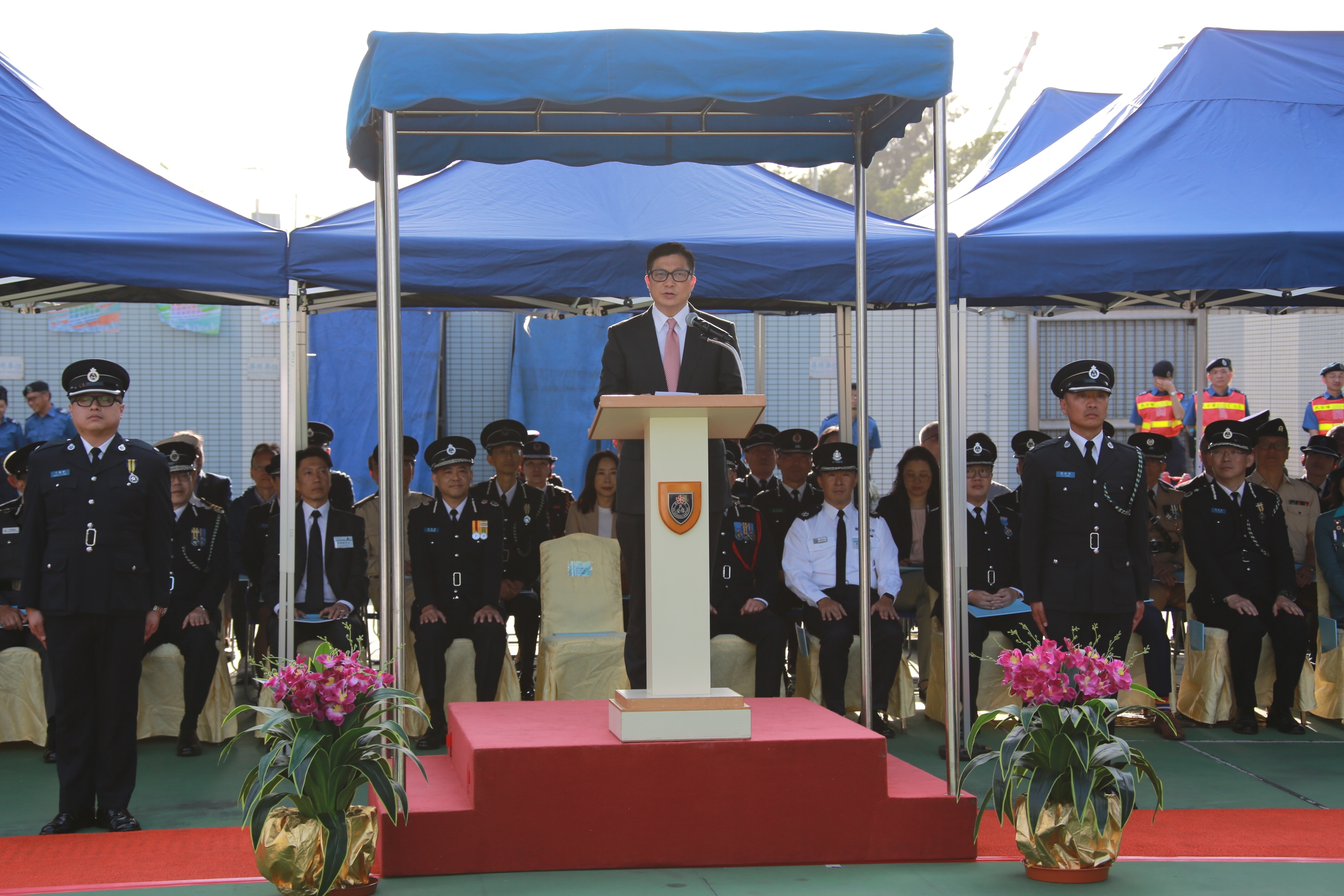 大公文匯全媒體報道,民眾安全服務隊(民安隊)少年團今日(19日)在民安隊總部舉行55周年會操,並邀得保安局局長鄧炳強擔任檢閱官。