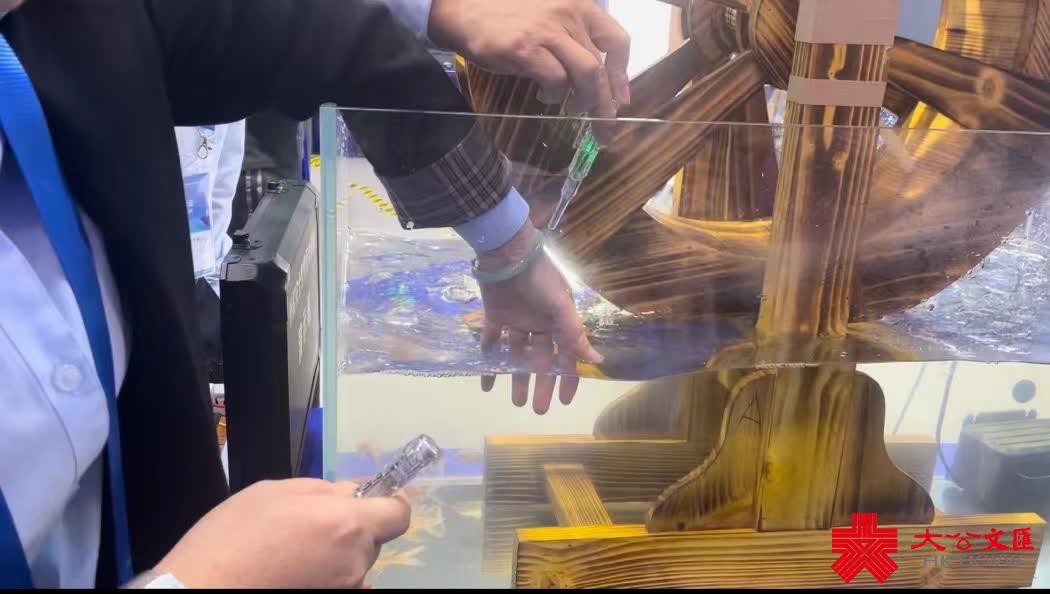在一個水缸處吸引了不少參會者,工作人員正在演示智慧用電模塊的使用。通過這個模塊,人即使接觸了有電的水,也會安然無恙,實現「電不怕水、電不傷人」。工作人員告訴記者,這個智慧用電模塊已經用在了一些學校、辦公室、家庭等場所。一些參會者表示用電安全很重要,這個產品十分生活化,很實用。