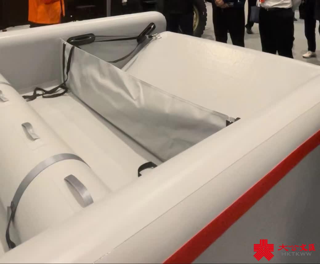 全球最領先的水上救援機器人也在展館亮相了!它在水中可以自動充氣,展開後外表看似是一隻橡皮艇。講解人員告訴記者,它有幾個「厲害」之處:救援單次人數多,相比於之前一次只能救1—2個人的水上救援機器人,它可以救8—10個人;投入使用前的準備時間降至最低,進入水中後它能夠自動充氣,並在3分鐘內完成充氣;還可以進行遠程(4公里範圍內)語音控制、遙控補氣。