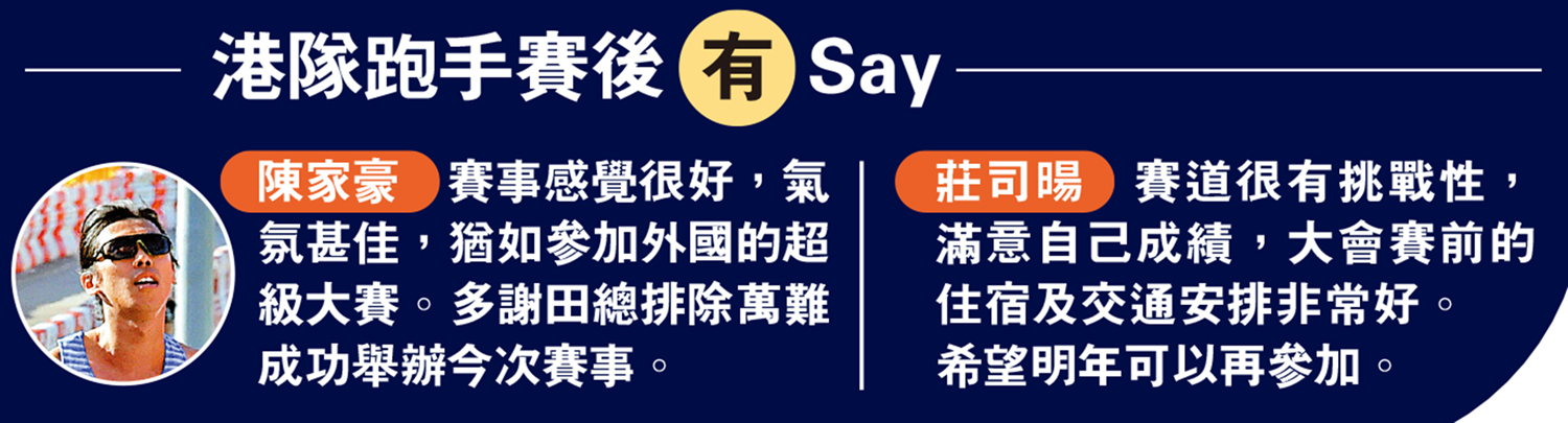 許雙雙說:「我覺得賽道難度較大,上下坡比較多。我今(昨)天狀態不是很好,就把這次比賽當訓練課跑,在有些傷病的情況下,安全完賽。今(昨)天的賽道有一個折返點,因此能看到很多大眾跑友給我們加油。首次在這樣的環境下跑,也是一個體驗吧。」
