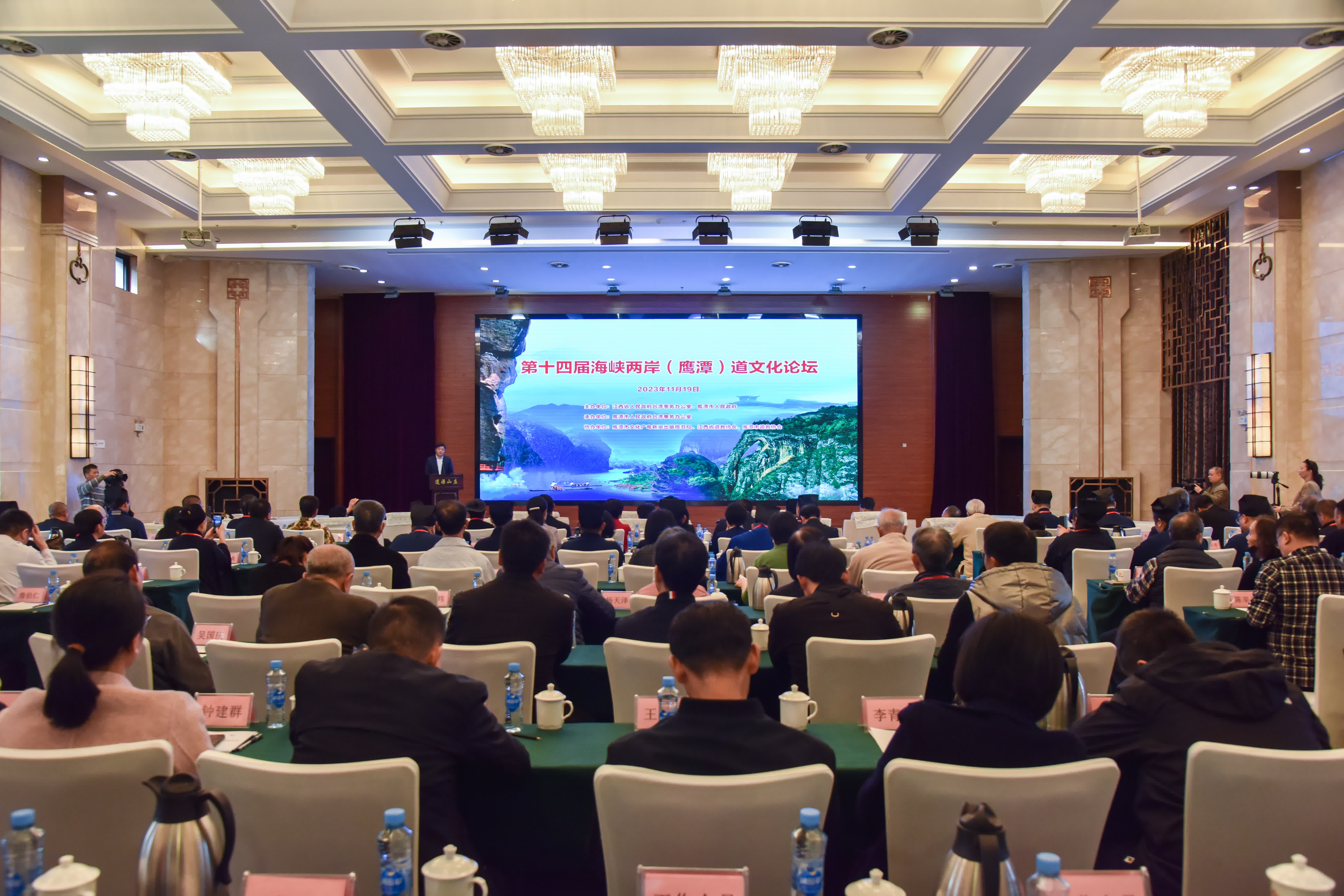 11月19日下午,由江西省台辦、鷹潭市政府主辦的第十四屆海峽兩岸(鷹潭)道文化論壇在鷹潭舉行。此次活動以「行道立德·重人貴生」為主題,邀請了來自海峽兩岸的道教界人士、專家學者等150餘人參加。