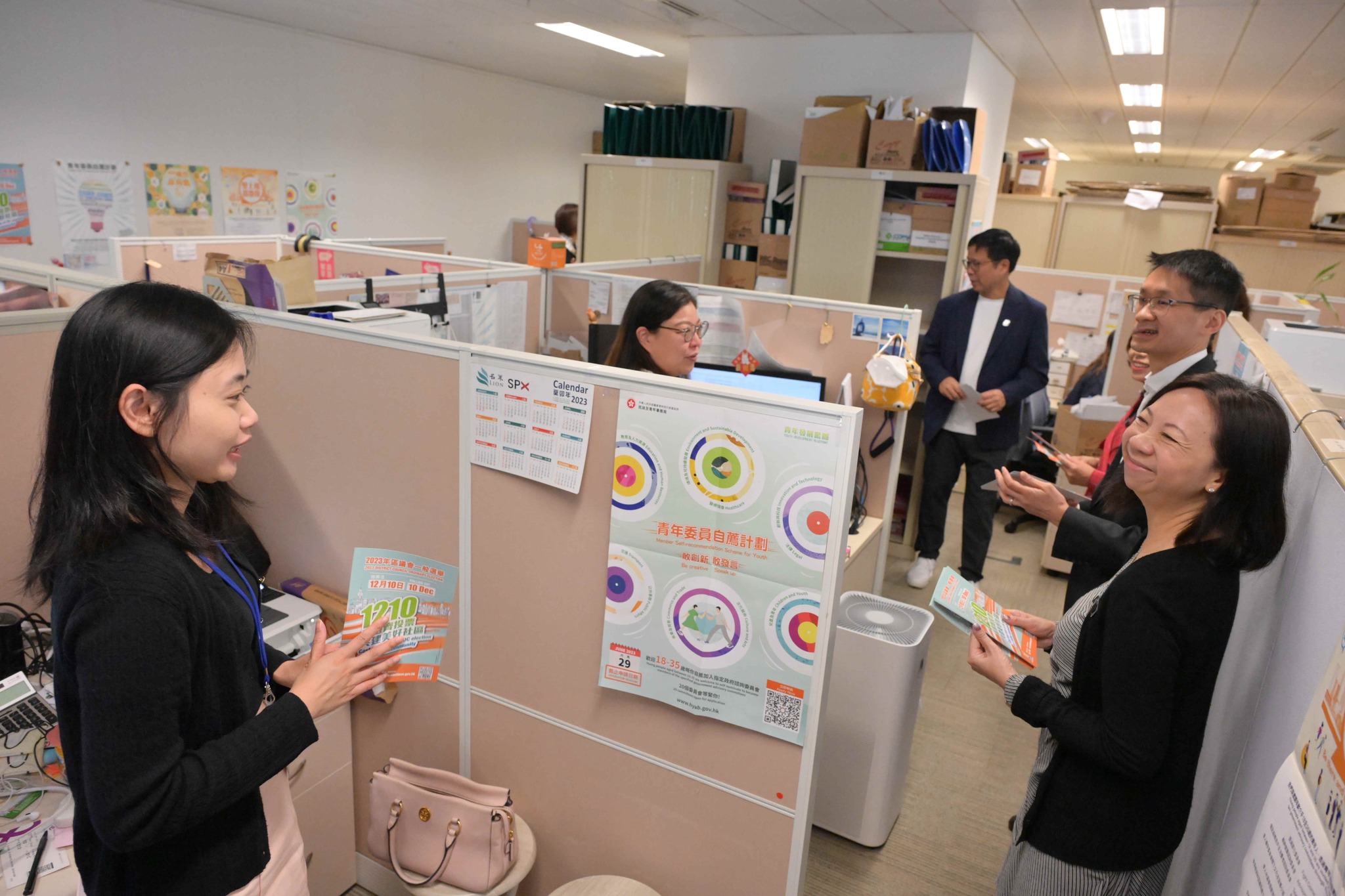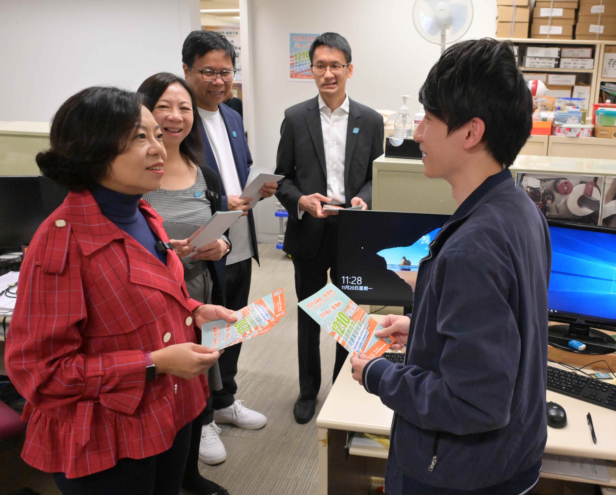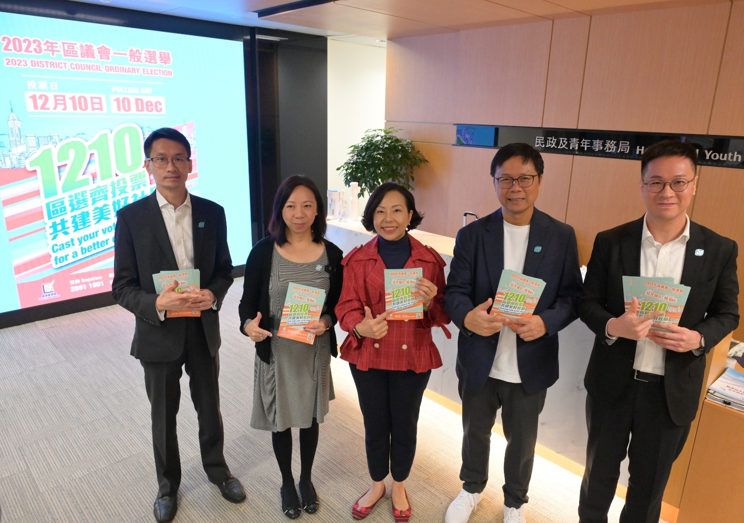 大公文匯全媒體報道,12月10日是新一屆區議會選舉的投票日。民政及青年事務局局長麥美娟和常任秘書長林雪麗及副秘書長歐陽力,今(20日)早在政總辦公室「洗樓」,呼籲民青局同事12月10日記得投票,還要叫上家人同朋友齊盡公民責任,選出心儀的區議員服務社區!