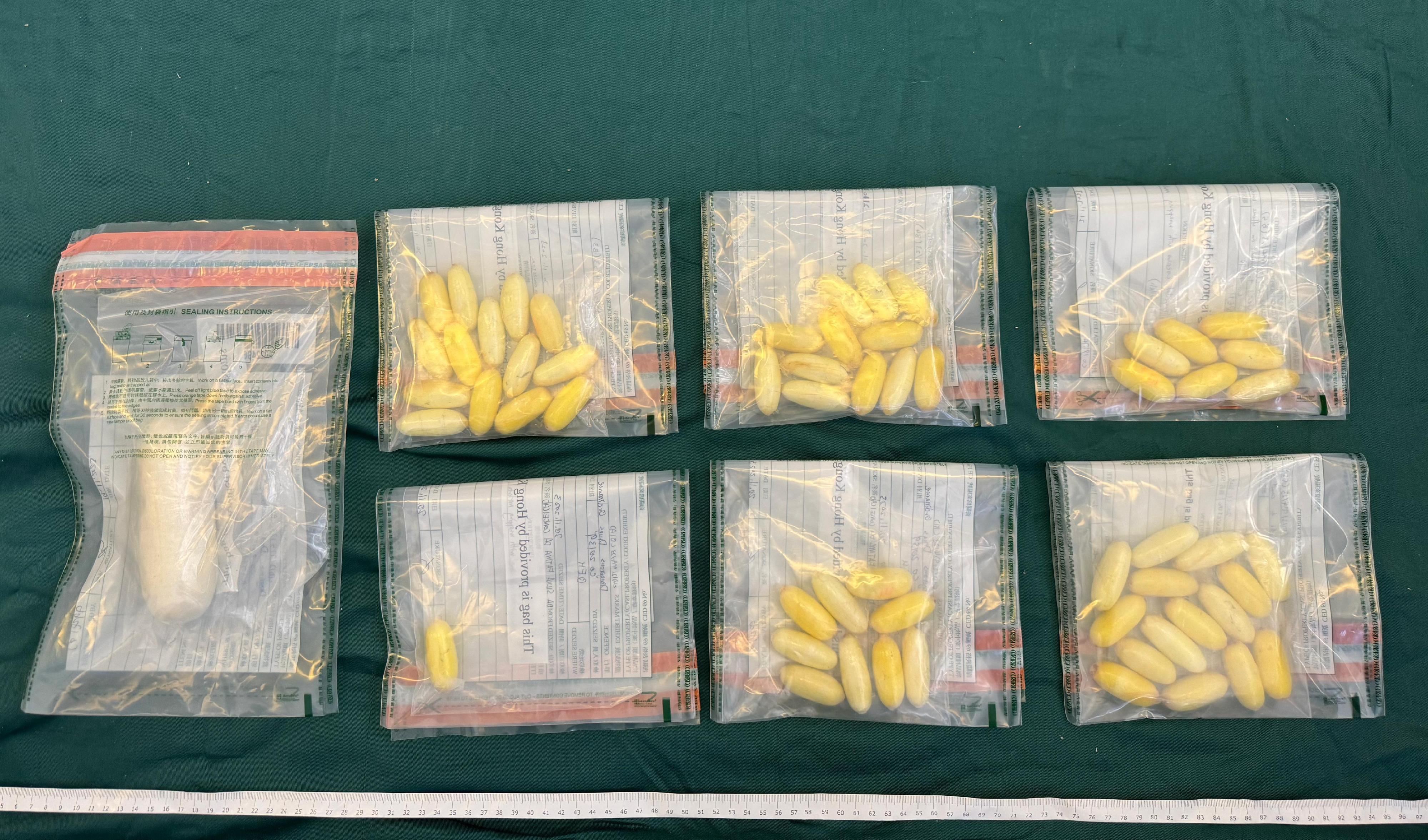 經檢查後,醫生確認該名旅客體內藏有異物。截至今日(21日)下午1時,被捕人士已從體內排出59粒共重934克的懷疑可卡因。
