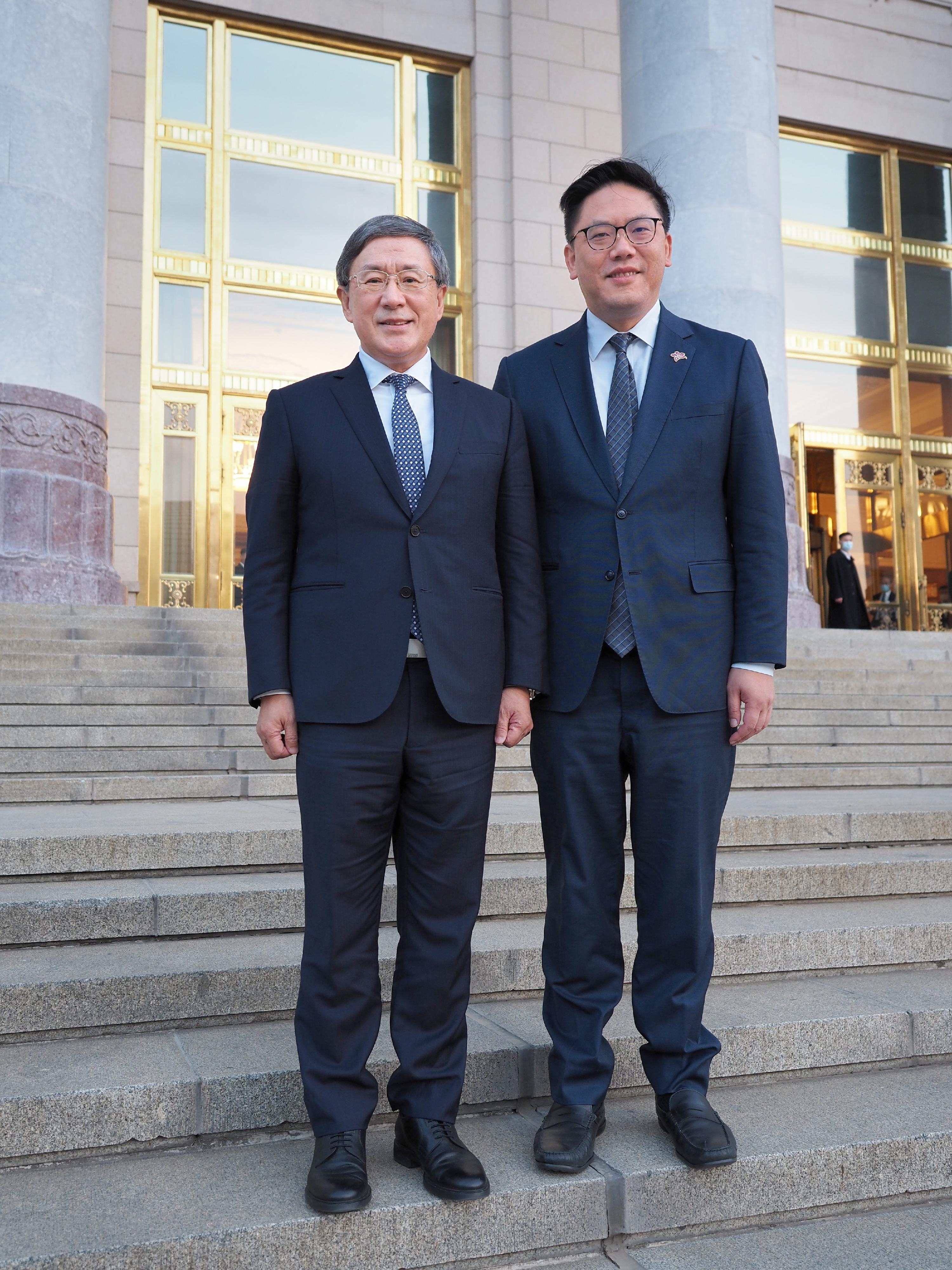 國務院副總理丁薛祥在人民大會堂會見代表團全體成員,並合照留念及座談交流。國務院港澳事務辦公室主任夏寶龍和共青團中央書記處第一書記阿東等陪同參與以上活動。卓永興和梁宏正亦有出席。
