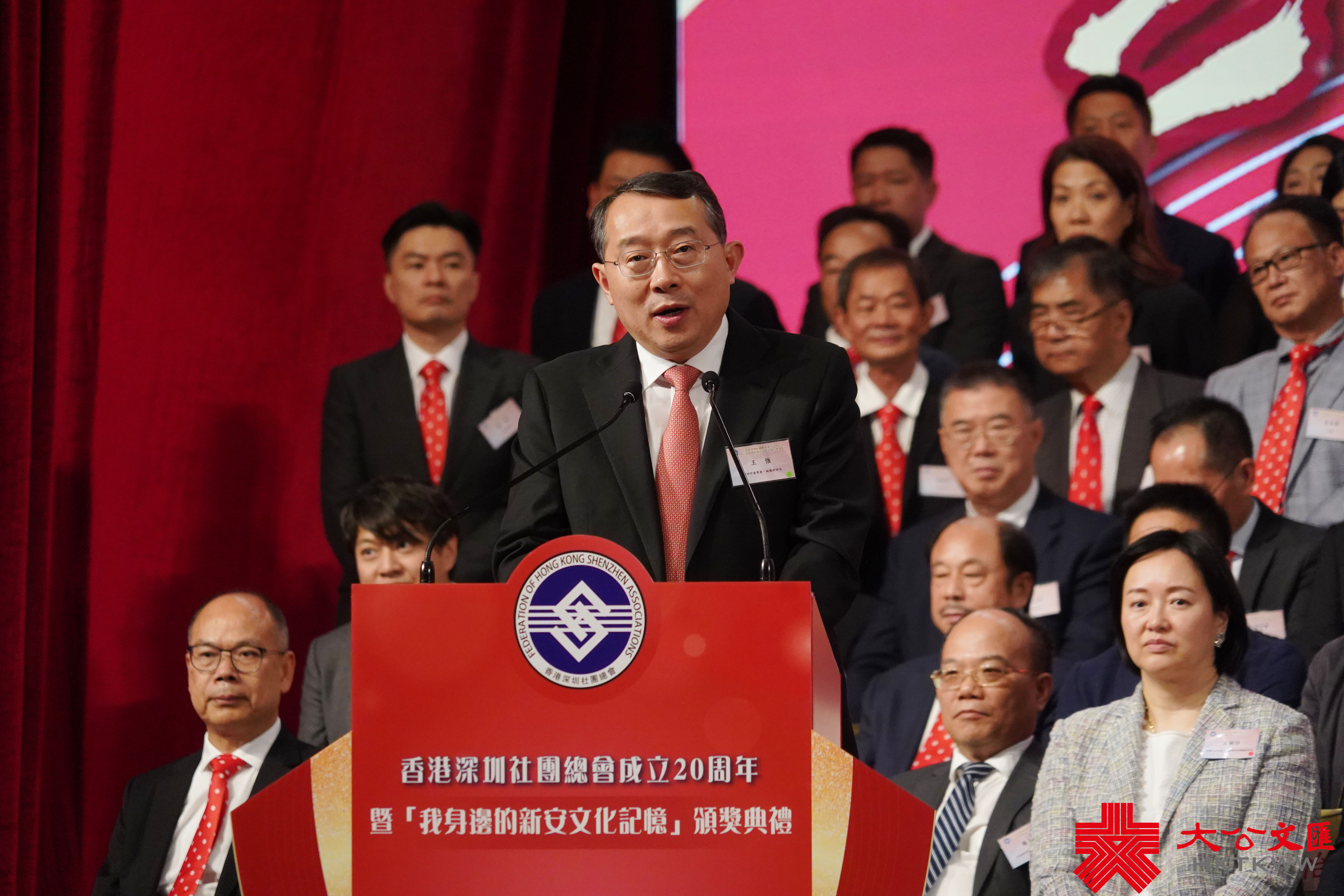 中央政府駐港聯絡辦副主任何靖,廣東省委常委、統戰部部長王瑞軍,深圳市委常委、統戰部部長王強等出席主禮。
