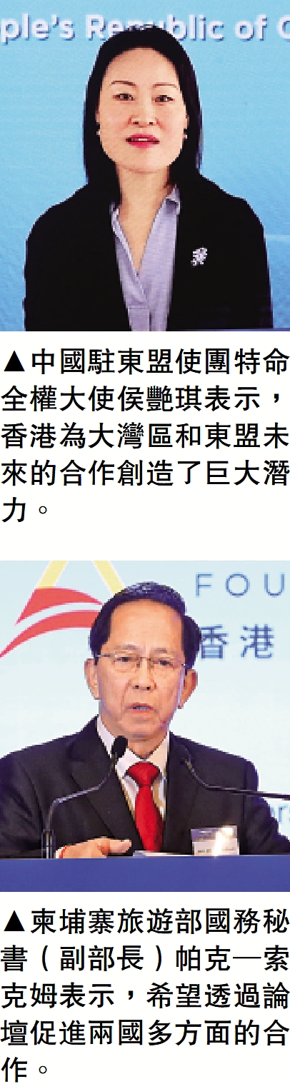中國駐東盟使團特命全權大使侯艷琪、柬埔寨旅遊部國務秘書(副部長)帕克─索克姆亦在主題演講環節發表致辭,並希望本次論壇可以加深中國與東盟成員國在各方面的交流,共同推動雙方在多個領域的合作發展。