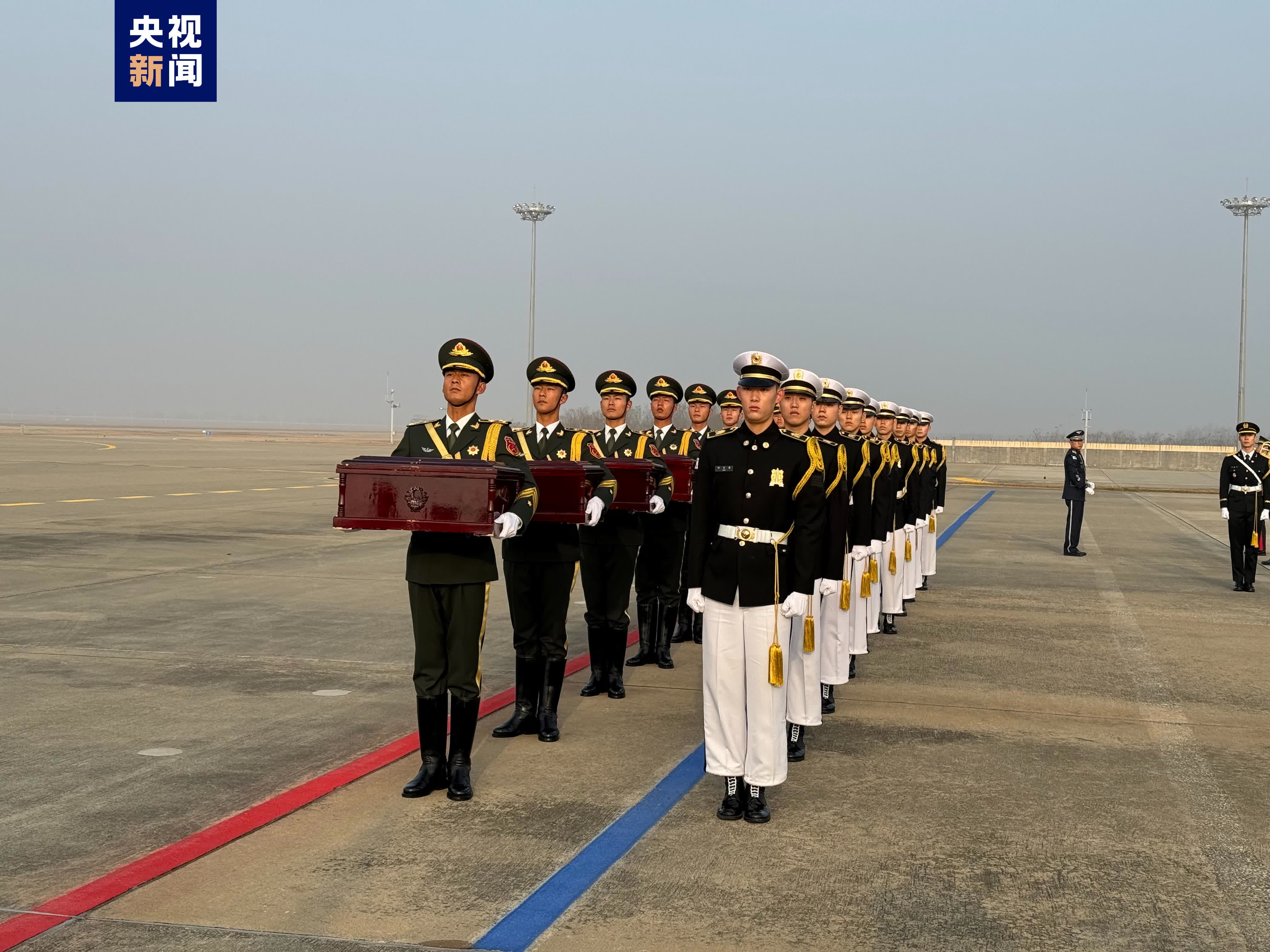 據央視新聞報道,當地時間11月23日上午,中韓雙方在韓國仁川國際機場舉行第十批在韓中國人民志願軍烈士遺骸及遺物交接儀式。