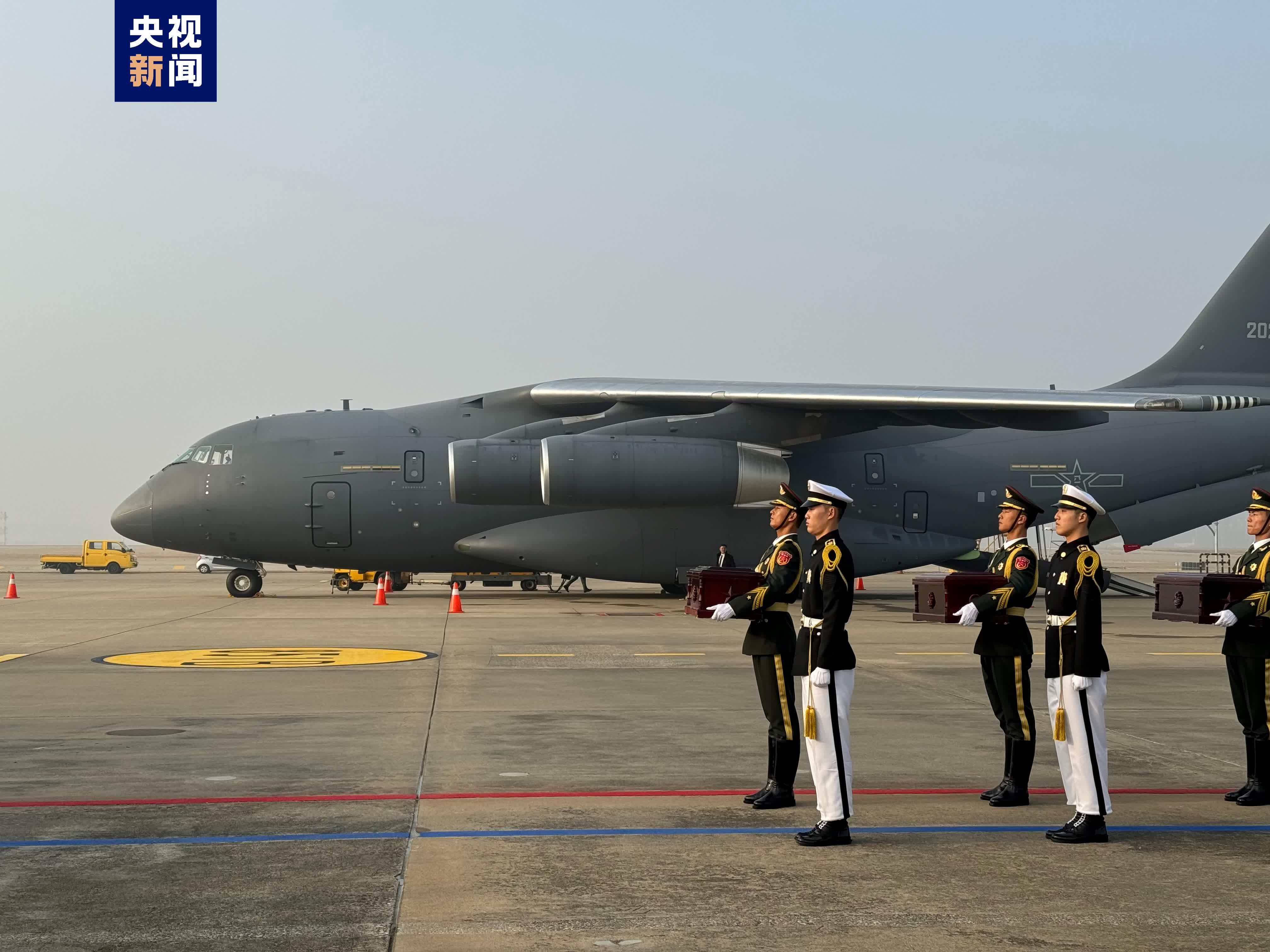 此次韓方共向中方移交25名中國人民志願軍烈士遺骸及335件遺物,交接儀式後烈士遺骸將搭乘中國空軍運-20專機返回祖國。