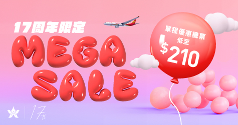 大公文匯全媒體報道,為慶祝成立17周年,香港航空將於下周一(11月27日)起至12月4日,推出一連8天限時機票優惠,提供逾5萬張單程機票,票價低至210元起,涵蓋中、日、韓、泰等共14個航點,優惠下周一早上10時開始,航點、出發日期及詳細票價稍後公布。