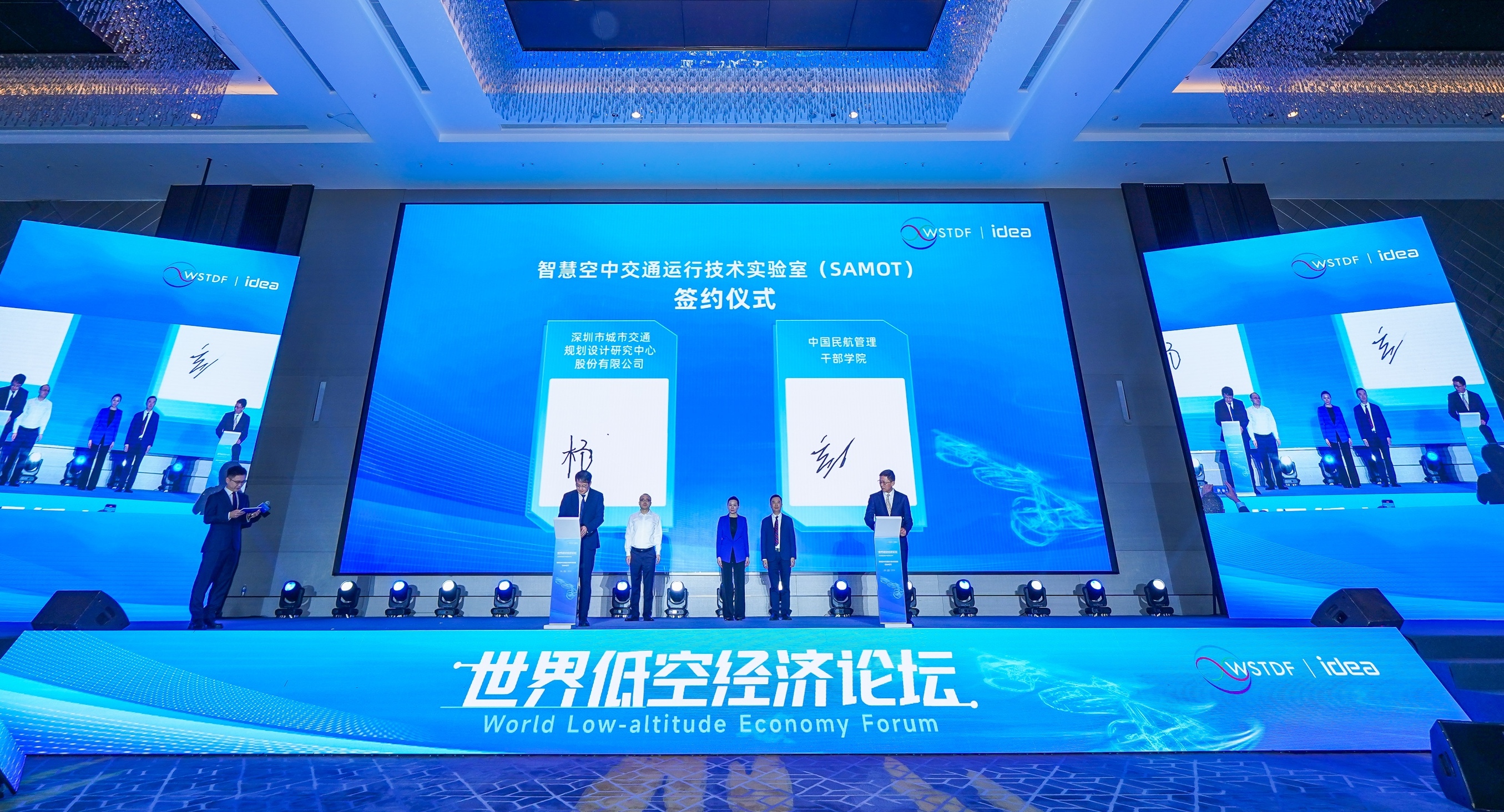論壇期間,中國民航管理幹部學院、深圳市城市交通規劃設計研究中心股份有限公司現場簽約,共建智慧交通空中運行技術實驗室。IDEA研究院發布了《2023低空經濟發展白皮書-全數字化方案》,分享「異構、高密度、高頻次、高複雜度」低空飛行安全和效率問題的解決思路,並對SILAS系統技術路線與創新點作深度解讀,進一步支撐深圳低空智能融合基礎設施建設工作。