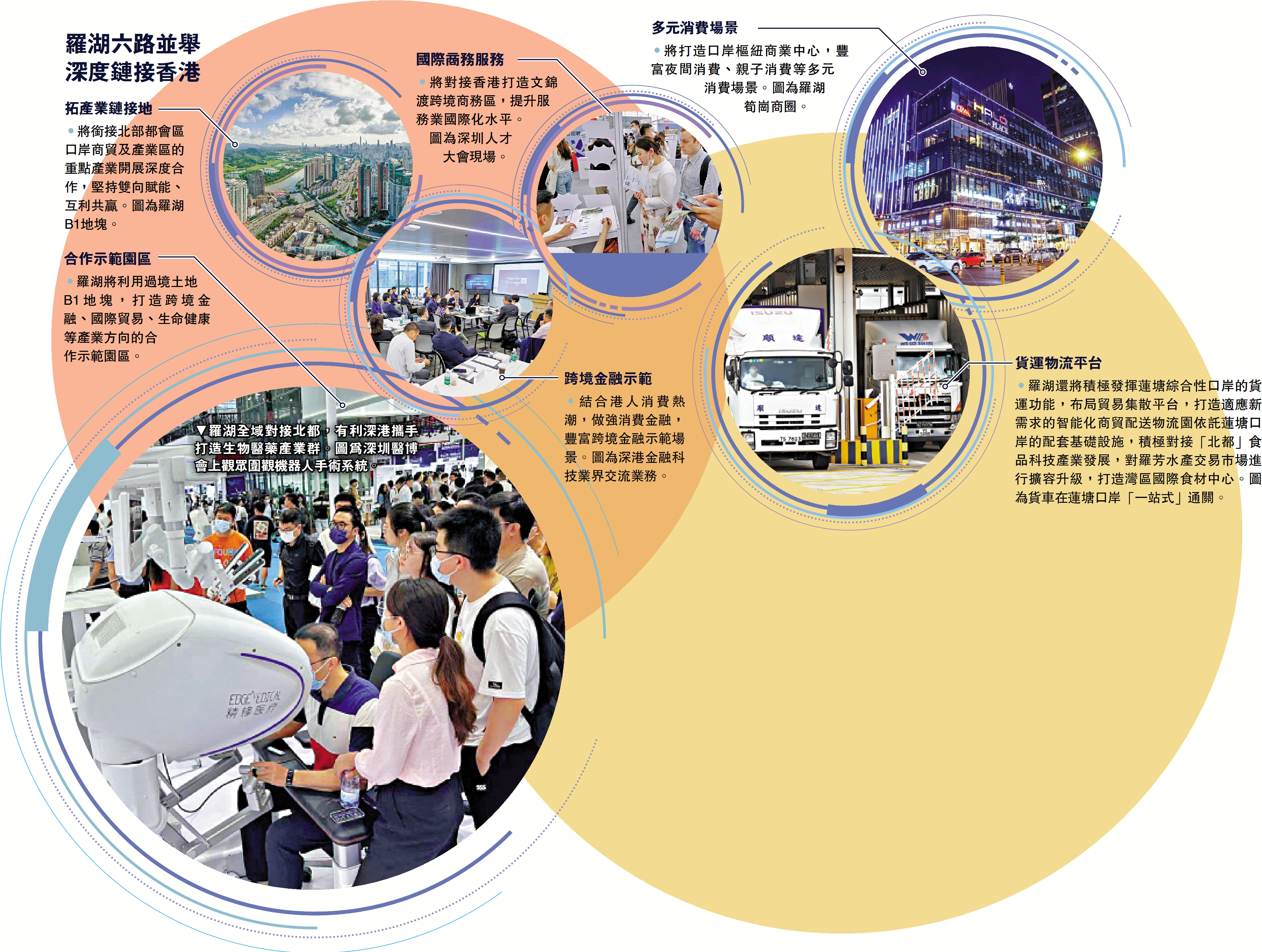 此外,羅湖將推動口岸服務提升,優化旅客通關體驗,在羅湖口岸推動實施常旅客計劃。同時,積極銜接好北部都會區提出的「兩鐵一路」基礎設施。