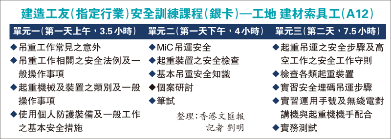 他解釋,議會增加吊運工安全訓練課程是因地盤大量建材需要吊運,且目前組裝合成建築(MiC)有所增加,對吊運需求亦上升,加上業界愈來愈着重安全,因此有關安全培訓的需要亦相應增加。