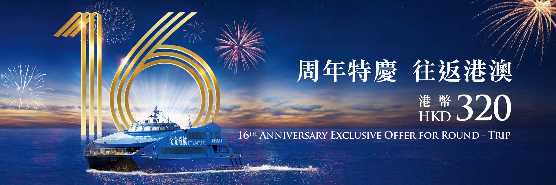 金光飛航發言人指,在11月25日至11月30日期間,於金光飛航官方網站「特別優惠專區」,預先購買優惠期間的金光飛航香港港澳碼頭,往返澳門氹仔客運碼頭,成人標準艙來回套票可享每套港幣320元。