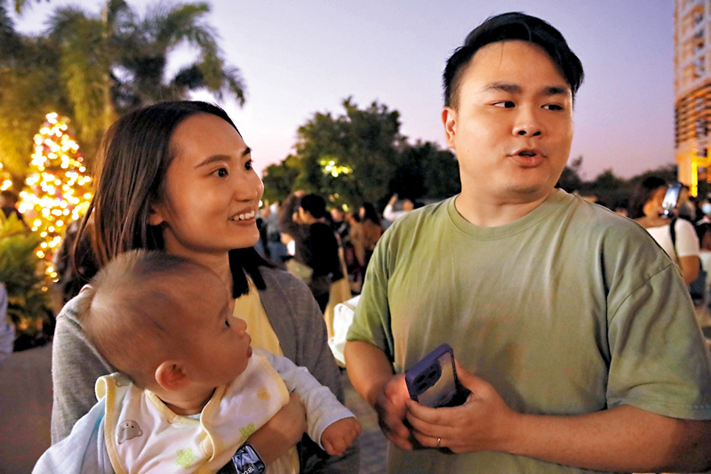江先生夫婦昨日帶同孩子來西九的巨型聖誕樹前合影留念,一家人昨日從上水開車過來,希望給小孩一個美好的聖誕回憶。「我們是看到有朋友昨(前)天來過,照片很好看,我們也打算自己來看看,整體是不錯的,很適合家庭周末消遣,特別是這邊有停車場很方便,揸車的人會特別關注泊車問題,這邊距離港鐵站也不是特別近。」江先生說。