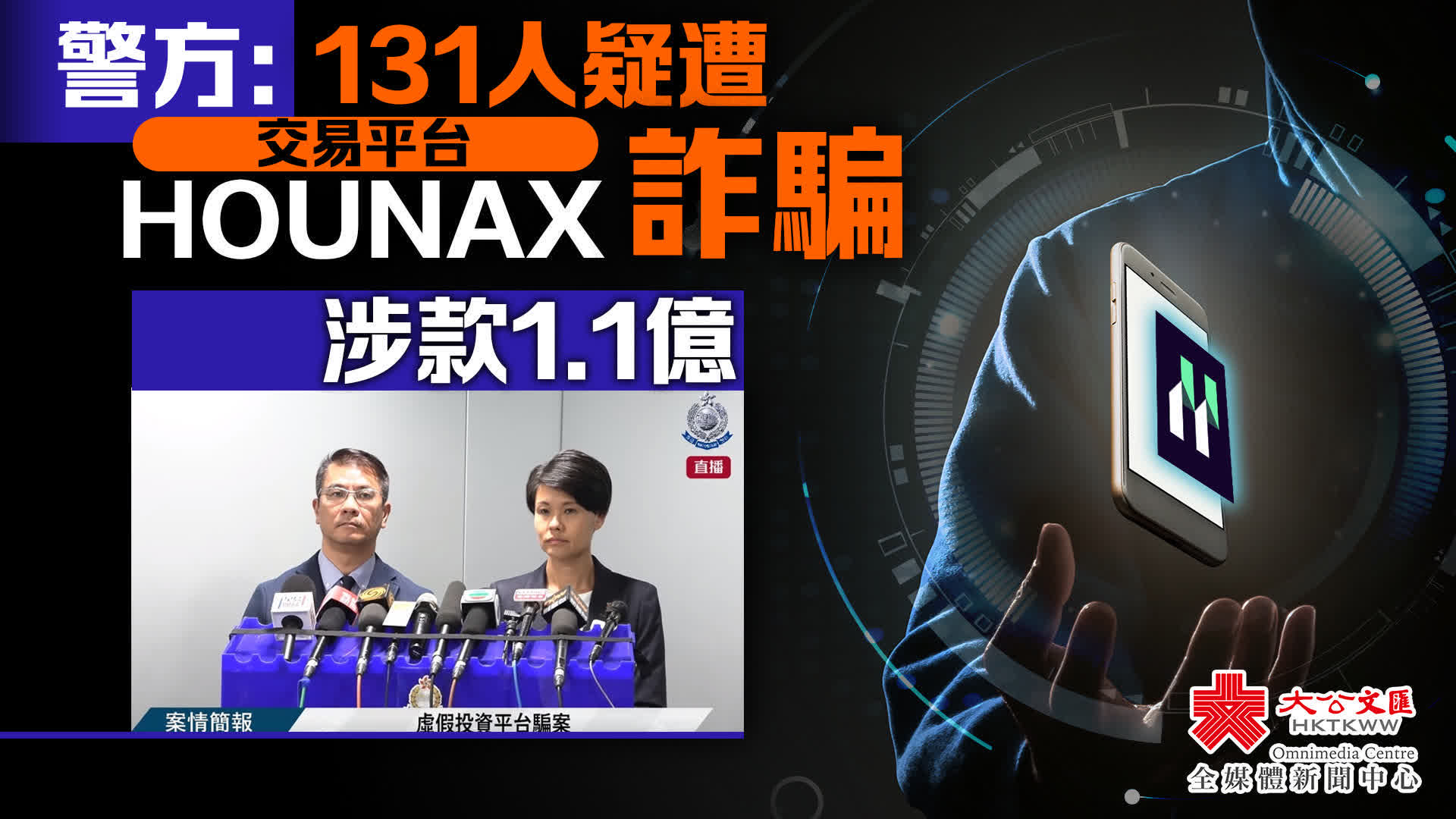大公文匯全媒體報道,無牌虛擬資產投資平台JPEX餘波未平,又有虛擬資產交易平台或涉詐騙。警方昨點名呼籲市民留意另一平台Hounax,同樣疑涉詐騙,截至前日(24日)收到88宗報案,涉及131人,稱「入金」後無法提款,損失近1.2億元,最多單一損失1200萬元。案件由商業罪案調查科調查,暫未有人被捕。