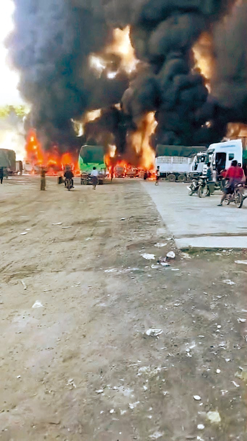 在緬中國貨車被指遭焚毀