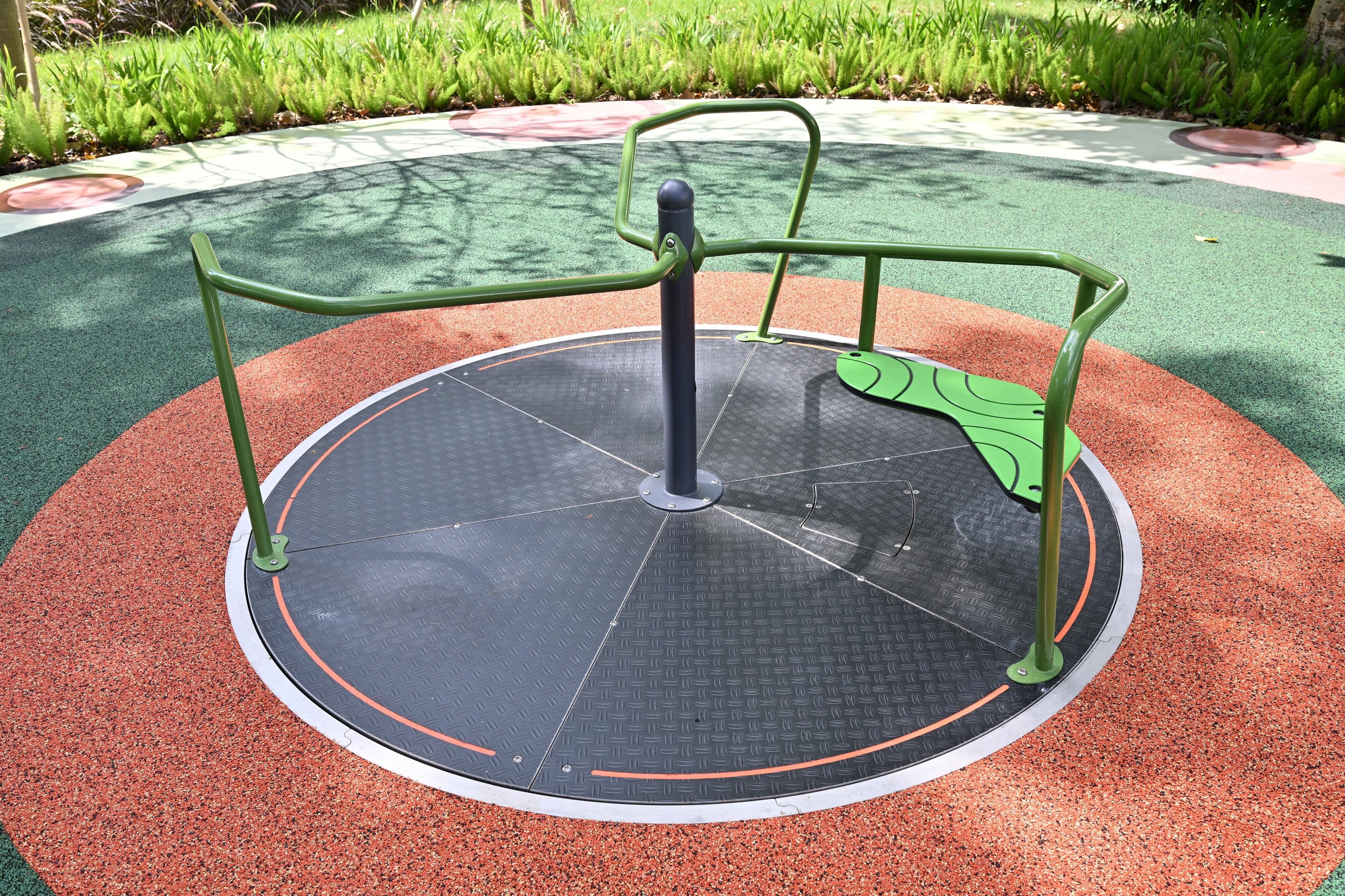 據悉,新建的共融遊樂場佔地約6400平方米,較原有兒童遊樂場面積增加四倍以上,採納市民意見,設有「沙丘地堡」、「森林草原」及「綠洲噴泉」三個主題區,設置多種類型的鞦韆和不同高度的滑梯。其中位於「沙丘地堡」的攀爬塔更連接高逾6米及長逾13米的旋轉滑梯,是目前康文署轄下遊樂場最高及最長的滑梯,讓使用者遊玩時更添趣味。另外,「綠洲噴泉」因應9月風暴影響仍在進行維修,開放使用日期另行通告。此外,場地亦設有攀爬繩網、敲擊樂管和鼓、健身區,以及可供輪椅使用者享用的氹氹轉和彈床等。