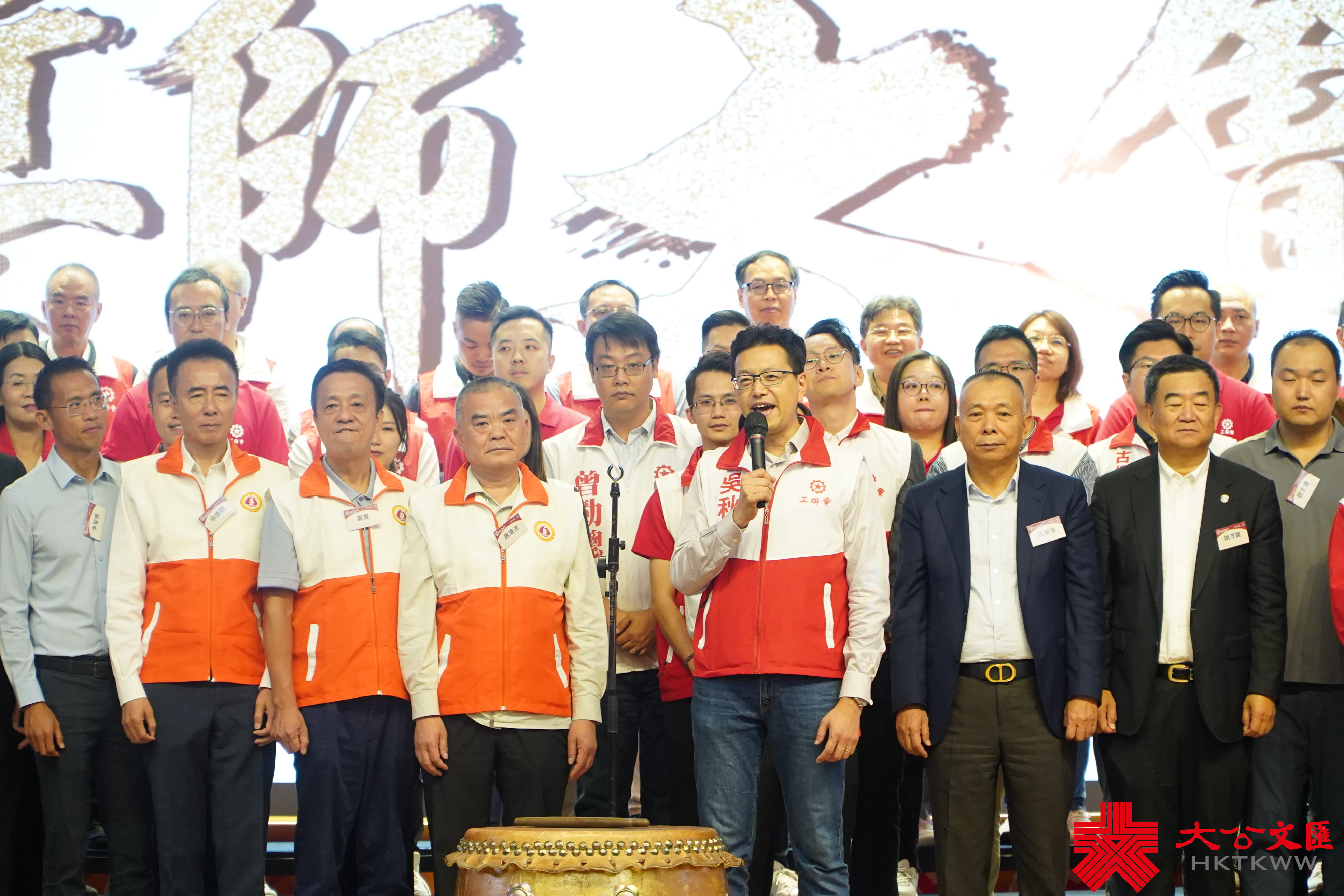 大公文匯全媒體記者報道,工聯會今日(26日)舉行區議會選舉誓師大會,地區直選界別候選人、地區委員會界別候選人及一眾義工參加活動,所有人身着紅色工聯會服裝,現場呈現一片「紅海」。工聯會立法會議員及多個同鄉社團領袖亦到場打氣支持,氣氛非常熱烈。