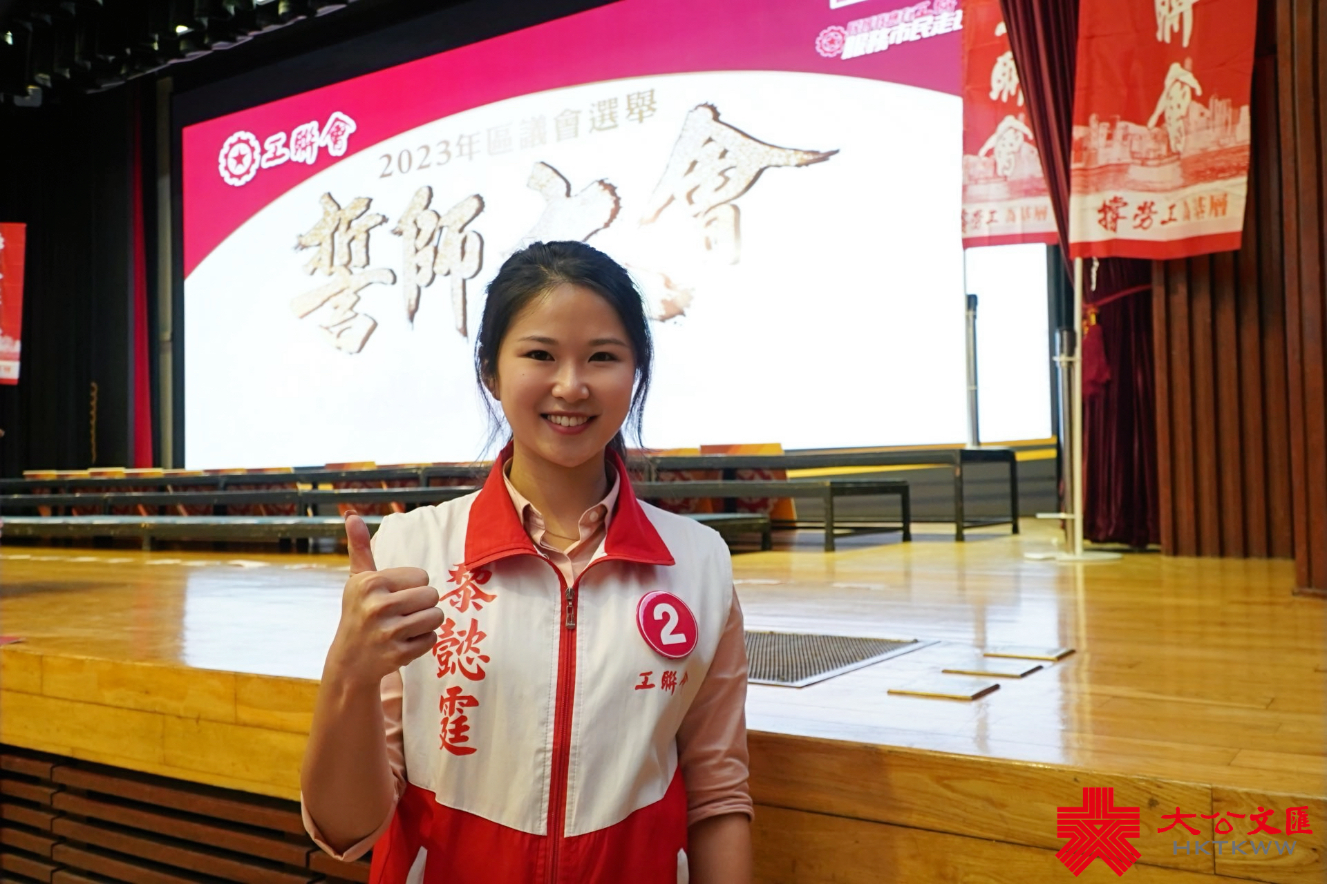 油尖旺北地區直選候選人黎懿霆首次參選,是工聯會派出的「小花」之一。黎懿霆自小跟隨父母到社區和工會做義工,雖然年紀輕,卻不乏服務經驗,因此畢業後就加入工聯會。黎懿霆表示,油尖旺北多長者、多劏房,心理學出身的她關注劏房兒童的心理健康,指空間狹小難免令兒童產生壓迫感和壓力,繼而產生不公平的想法,強調有必要幫助他們脫離劏房困境。她指,新選制下,候選人都是愛國愛港的各界人士,今次選舉是「友誼之戰」,相信未來的區議會一定更好,同時她希望得到大家支持,呼籲市民12月10日踴躍投票。