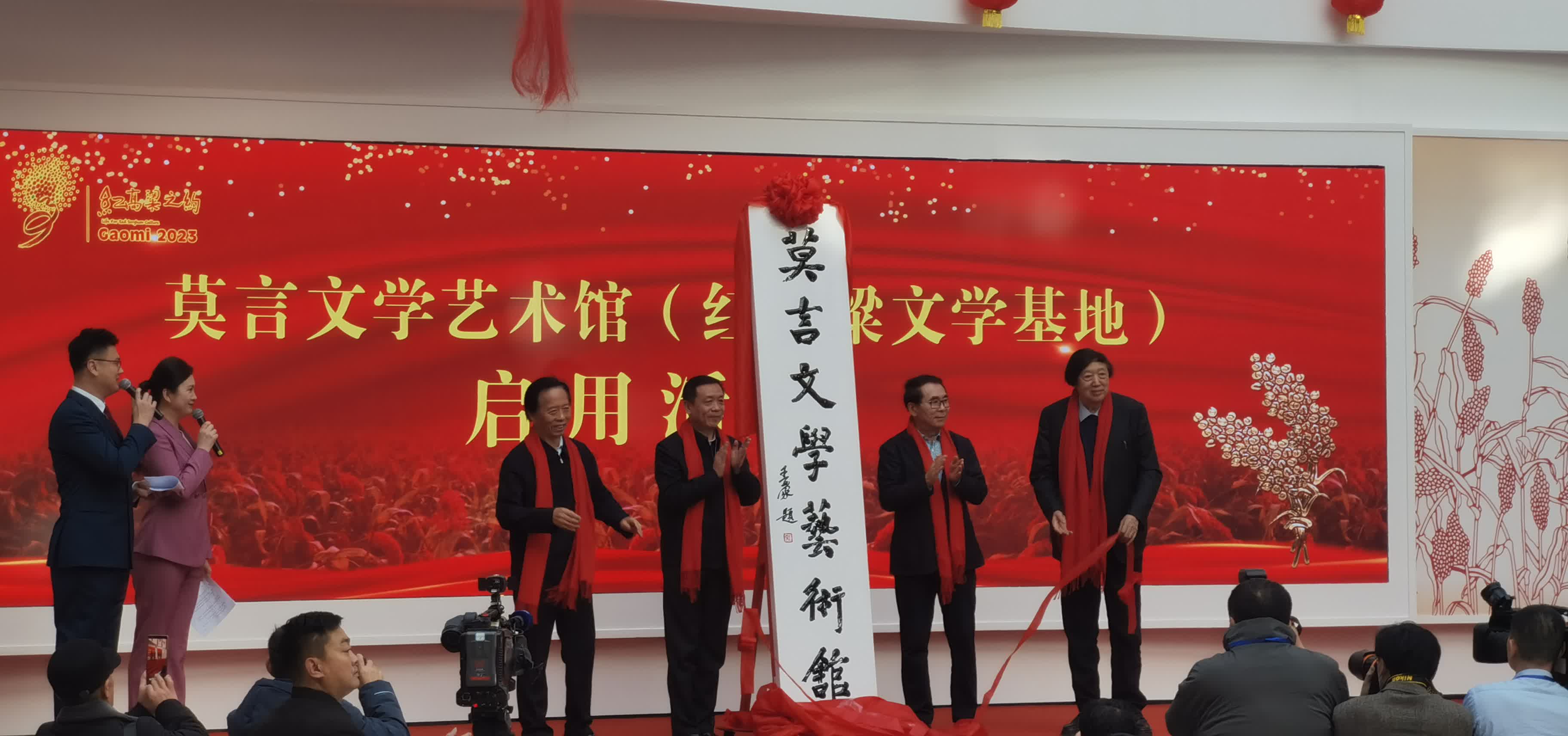 (大公文匯網記者 張寶峰 山東報道)11月28日,莫言文學藝術館(紅高粱文學基地)啟用活動在山東濰坊高密市東北鄉舉辦。啟用活動上,原文化部部長、人民藝術家王蒙為藝術館題寫館名,中國作協黨組書記、副主席張宏森揭牌,著名作家馮驥才上台致辭。