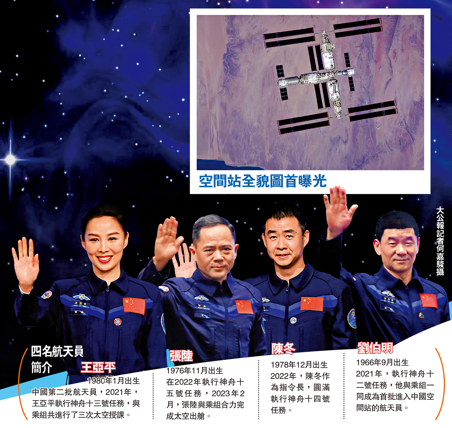 (大公報記者 魏溶)應香港特區政府邀請,中國載人航天工程代表團共17人於昨日訪港,代表團會在香港開展為期四天的交流活動。代表團昨日首次公布由神舟十六號航天員乘組拍攝的第一組反映空間站全構型的工作照。