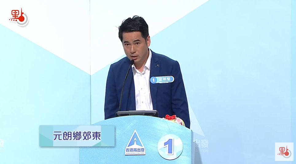 1號候選人梁明堅表示,鄉郊市民擔心垃圾隨意丟棄在路面,影響環境衞生,他建議設寛免期,並加強宣傳環保回收。他形容,自己是唯一元朗六鄉的代表,重視城鄉共融、共榮、共贏,不會區分元朗市區人或鄉郊人,強調參選並非為求選舉,而是秉承父親教導,助人為快樂之本。