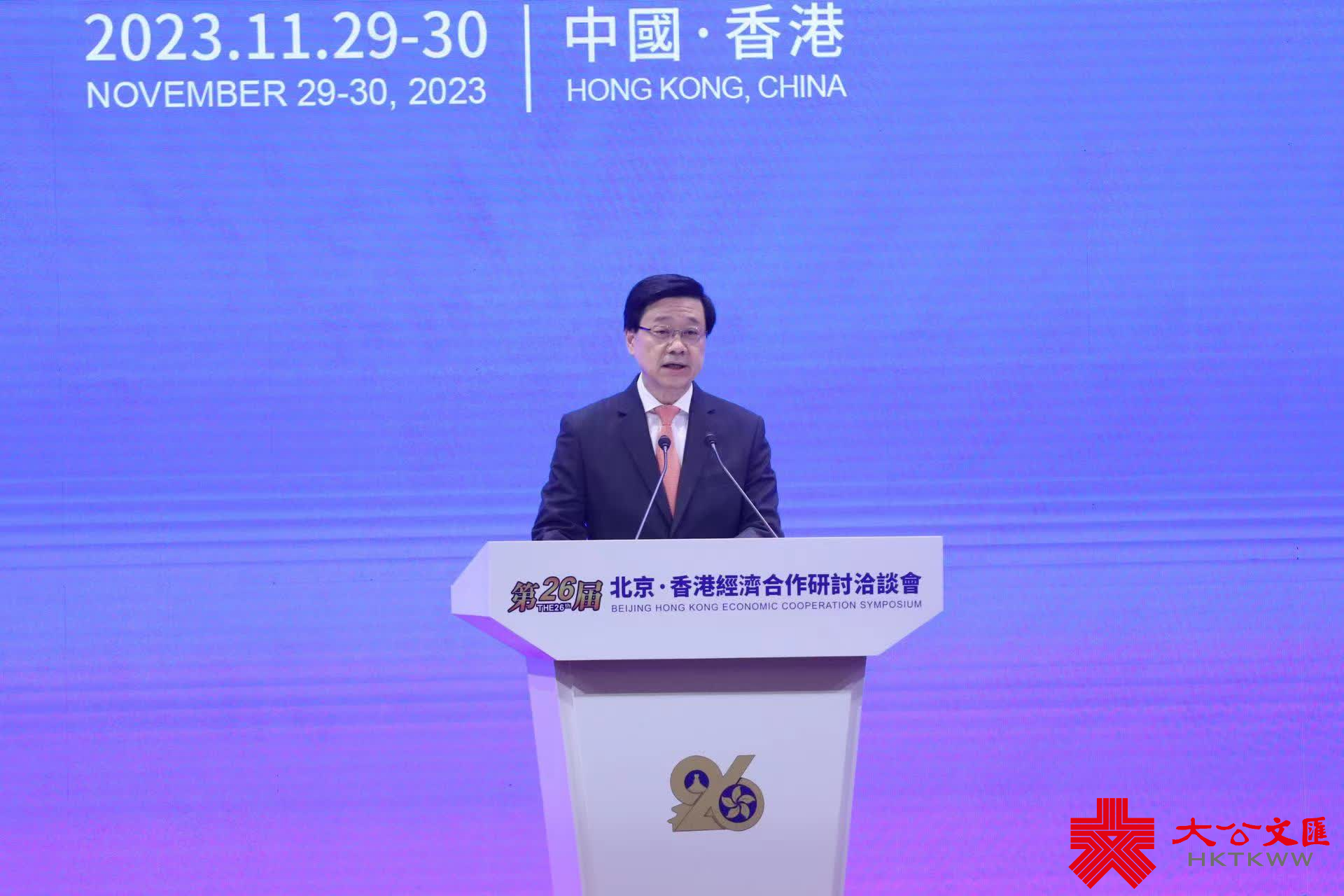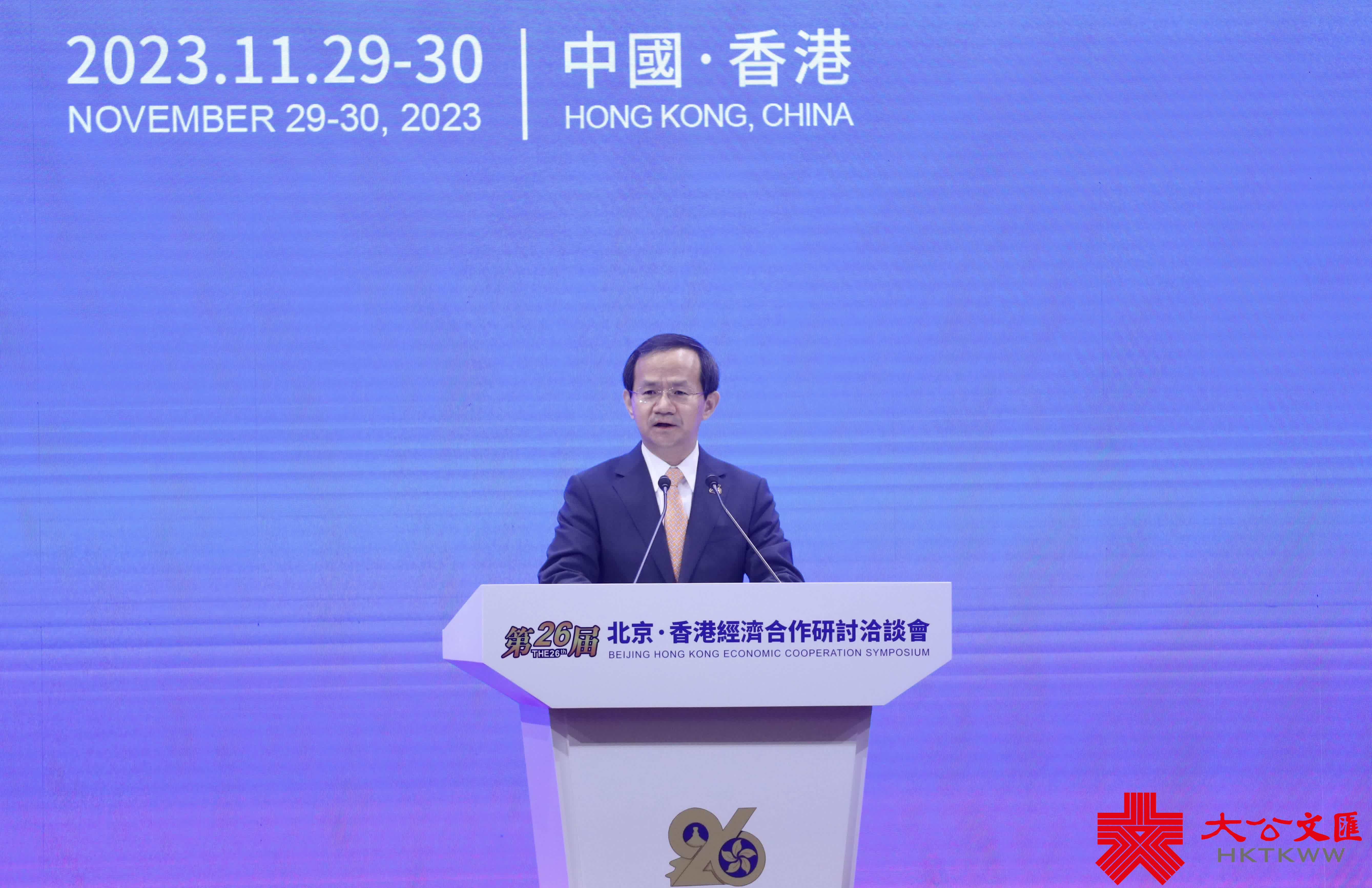 (大公文匯全媒體 記者 譚澤滔)第二十六屆京港洽談會於2023年11月29日至30日在香港會議展覽中心舉辦,以「深化合作 共贏未來」為主題。作為疫情結束後首次舉辦的京港兩地雙向投資交流的經貿盛事,由香港貿發局主席林建岳作為主辦單位代表致歡迎辭,並由行政長官李家超及北京市人民政府市長殷勇致辭。