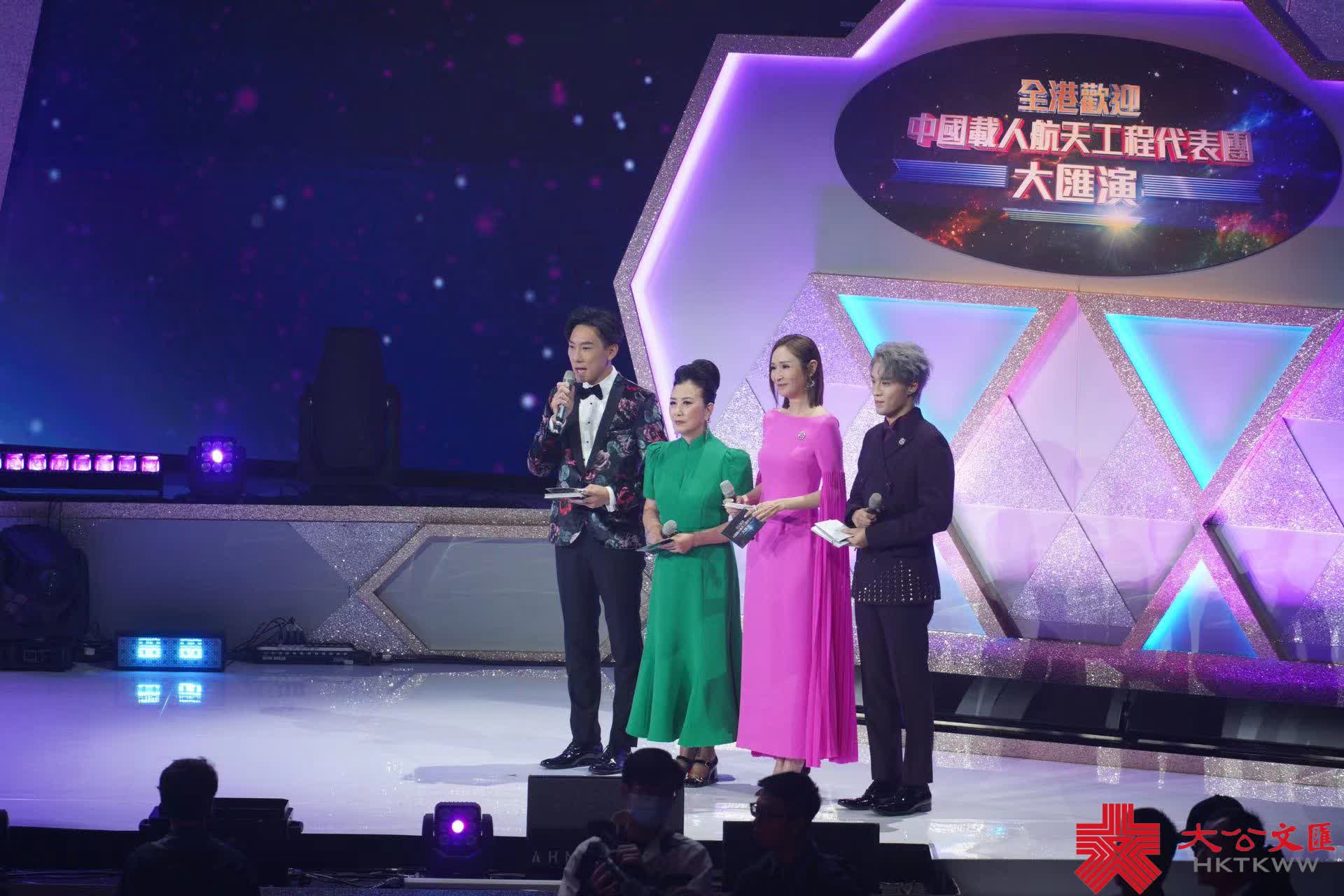 草蜢組合首先為大匯演帶來森巴舞唱跳節目,率先炒熱全場;隨後一班來自香港的音樂家通過鋼琴、小提琴、管弦樂及合唱團,用音樂為航天團打氣,國際青年鋼琴家牛牛、歌手涂毓麟等登台合作;來自SDM Dance爵士及芭蕾舞學院的表演者則帶來一段精彩的舞蹈表演。
