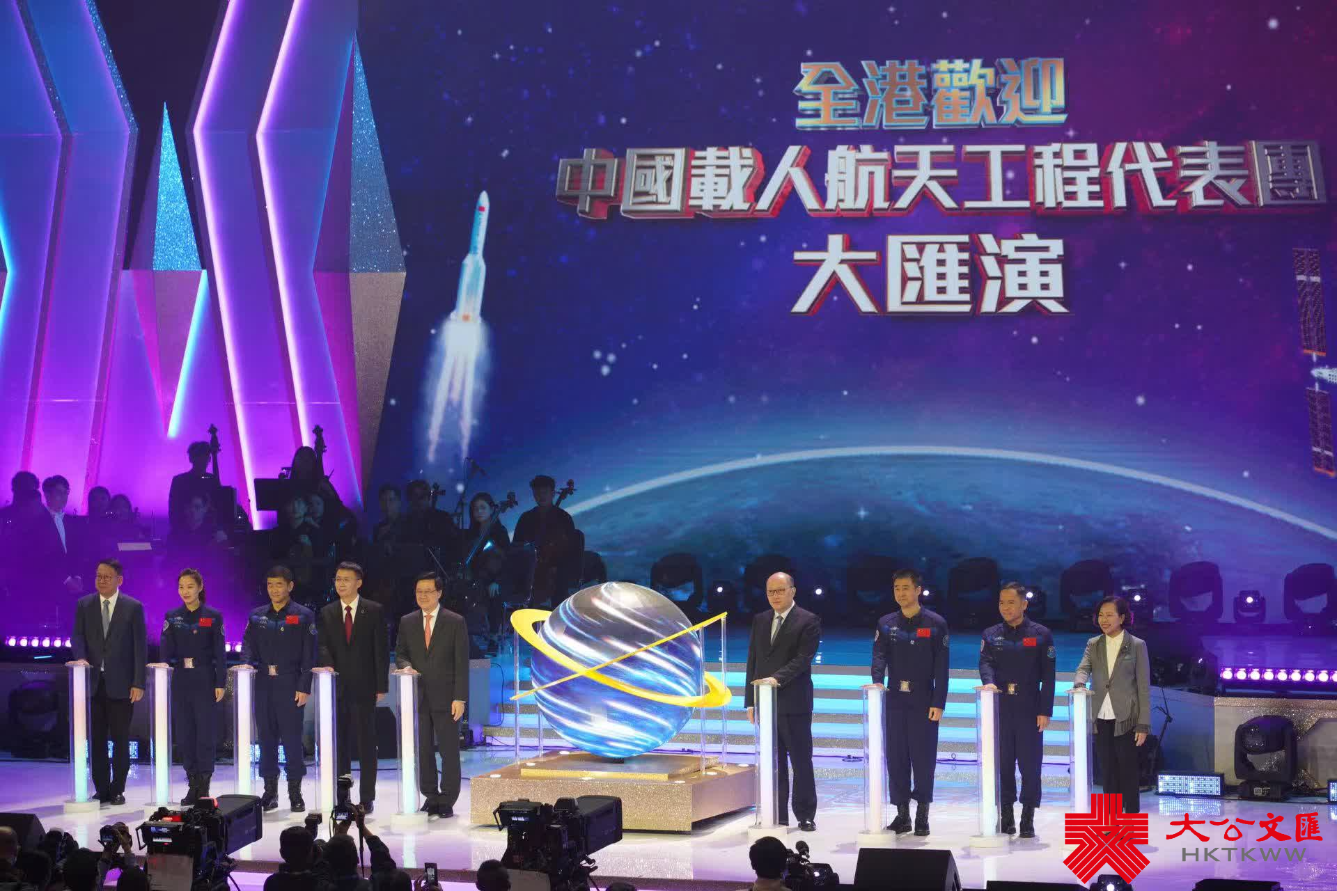 大公文匯全媒體報道,應特區政府邀請,中國載人航天工程代表團抵港,進行4天的訪問。代表團今日(29日)出席在香港體育館(紅館)舉行的「全港歡迎中國載人航天工程代表團大匯演」。