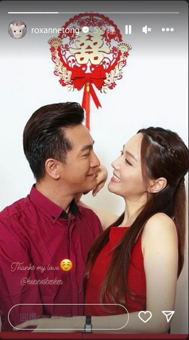 靚湯更留言說:「咁大個女第一次見到好似流星錘咁嘅龍鳳鈪,仲有好多隻豬豬,好靚好壯觀」,又自爆當日嚇到呆咗:「又一項完成,原來過大禮係咁複雜,嗰日係有少少呆咗,不過好多謝馬生嘅疼愛,同各位兄弟姊妹嘅幫手,任務順利完成。」稍後她又曬出二人攬實嘅合照,認真sweet爆。