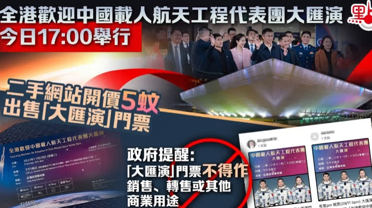 大公文匯全媒體報道,今天我們先來仰望星空,關注航天團訪港。應特區政府邀請,中國載人航天工程代表團於昨日(28日)抵港,進行4天的訪問。代表團今日(29日)下午5點出席在香港體育館(紅館)舉行的「全港歡迎中國載人航天工程代表團大匯演」。當航天員劉伯明、王亞平、陳冬、張陸入場時,現場氣氛熱烈,市民爭相拍照,只為近距離接觸國家航天英雄,一睹國家航天員的風采。大匯演群星雲集,譚詠麟、鍾鎮濤、草蜢、炎明熹、泳兒等為國家航天團成員及現場觀眾送上了精彩演出。