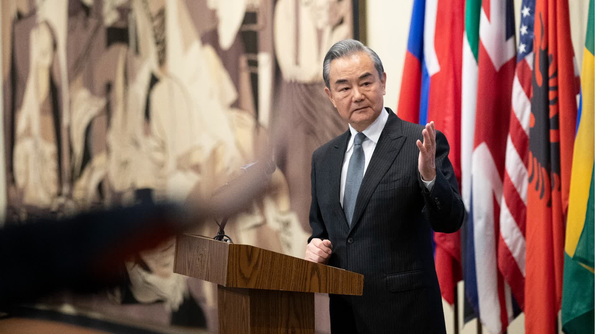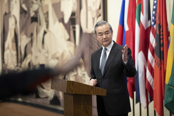 據新華社報道,當地時間11月29日,中共中央政治局委員、外交部長王毅在安理會巴以問題高級別會議後向媒體發表談話。