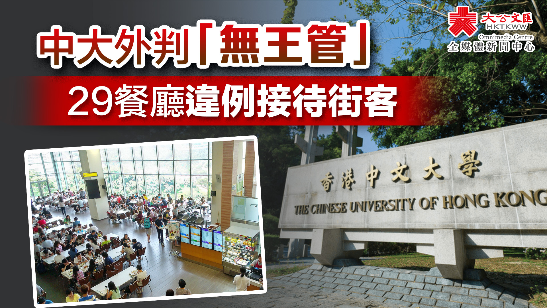 除了其中4間合約完結而停業的餐廳外,審計署早前實地調查該校29間餐廳,有16間貼告示聲稱只招待該校師生,但實際上全部都並非專供中大學生或教職員使用,有3間通過平台在校園外提供外賣,14間在無許可證下,賣非瓶裝飲品、奶類等受限制食物。另有3間更在第三方外賣平台,為校外顧客提供送餐服務,違反《食物業規例》。