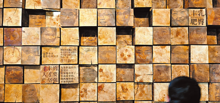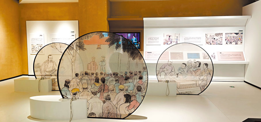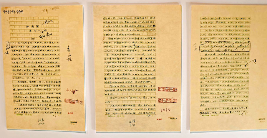 上世紀八十年代,以張藝謀執導的《紅高粱》為代表的一批影視作品有力地助推了「紅高粱文學」的影響力。拾階而上,人們便能看到由莫言作品改編的各類影視作品海報。此外,莫言創作的戲劇、書法作品同樣構成了一個個獨立又浩瀚的展出單元。展館還以實物重現的方式將莫言在北京平安里的書房「搬到」現場。正是在這裏,作家創作了《紅樹林》、《檀香刑》裏《四十一炮》等一大批頗有影響的作品。