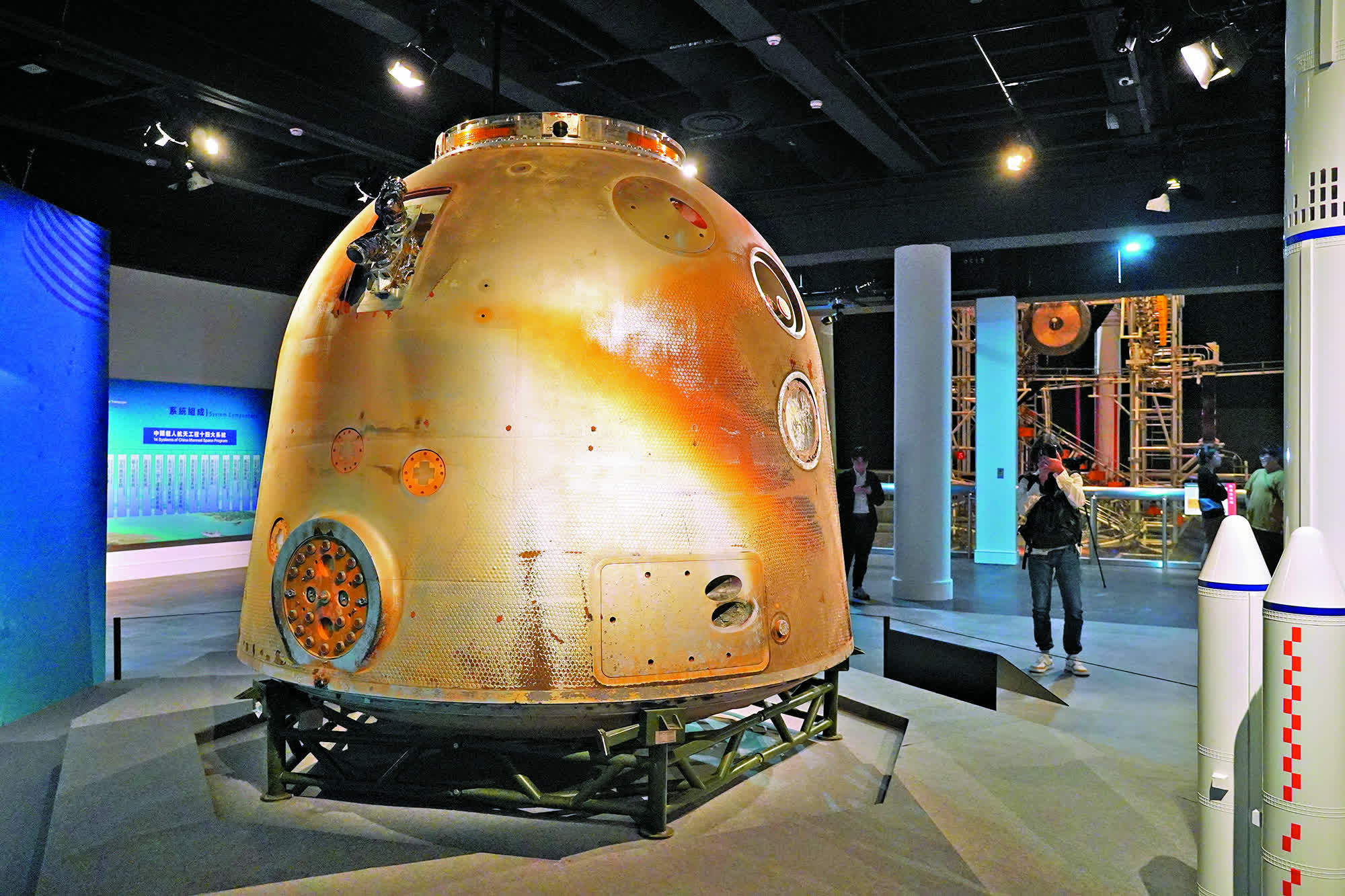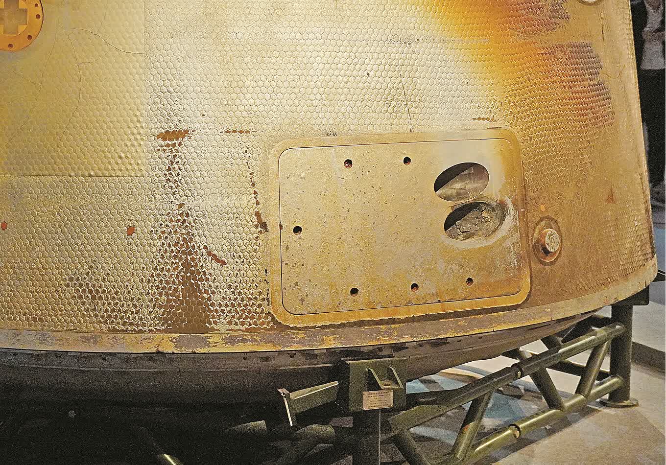 當細心留意時可發現返回艙外有燒焦痕跡,科學館總館長李為君解說,「飛行過程最危險就是起飛及返回」,當飛船返回艙高速着陸時承受很高溫度,外面最高溫度可達數千度,因此防隔物料及技術要求嚴謹……李為君說,大眾不妨思考為何返回艙某一部位有較明顯燒焦痕跡?