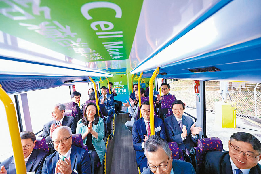 (香港文匯報 記者 文森)香港巴士業邁向新能源年代,首輛三軸雙層氫能巴士和首個巴士加氫站面世。該輛造價800萬元、由城巴與內地汽車生產商研發的雙層氫能巴士,預計最快明年1月投入服務。由於香港的現行法例不容許氫能巴士過隧道,故該款巴士初期只會在九龍區行走,票價不變。在昨日的啟動儀式試搭首輛三軸雙層氫能巴士、成為首名乘客的香港特區行政長官李家超表示,支持城巴引入新能源技術。有關的試驗結果會供特區政府參考,於明年制訂《香港氫能發展策略》,展開有關製造、儲運和使用氫能的法例修訂工作,目標於2025年提出草案。
