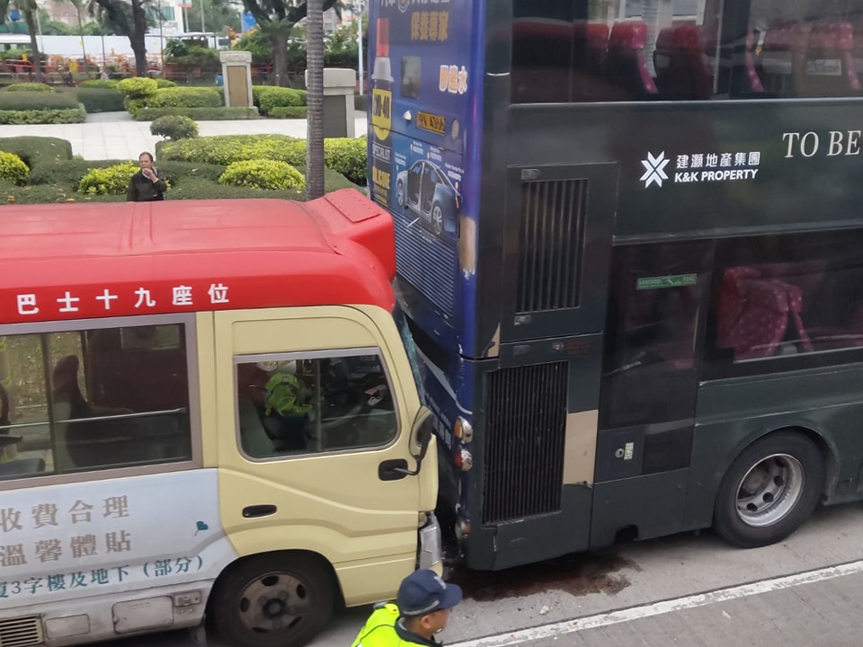今日(1日)早上7時許,一輛巴士與一輛小巴在馬頭涌道近馬頭涌消防局對開相撞。消息指,初步14人受傷,全部傷者均為輕傷。救援人員已趕往現場。