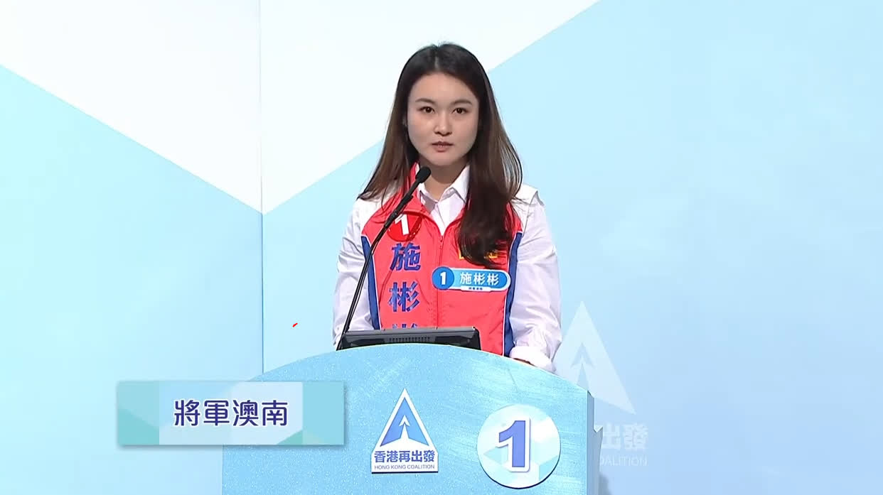 被問到政策被當區居民反對會如何處理,1號候選人施彬彬表示,溝通是化解矛盾的最好方法,強調區議員有兩項功能,其一是溝通橋樑,讓市民聲音上達政府,也讓政府政策落地;二是作出調研,優化政府推行政策。她說,會先了解市民反對原因,並會如實向政府反映,盡力協助政府解說工作,研究完善政策方案,爭取平衡兩方。