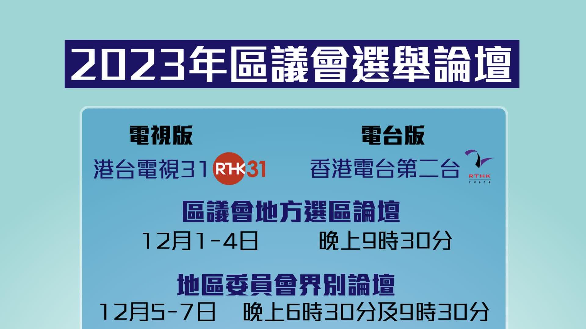 區議會地方選區論壇:12月1日至4日晚上9時30分