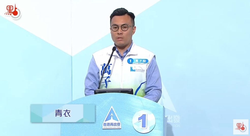 被問到如何建設中外文化藝術交流中心,1號候選人萬子殷指,香港各區都有獨特的傳統文化,以青衣真君誕為例,活動吸引大批市民、遊客參觀,但缺乏新血傳承及有效的宣傳推廣,需要專責部門處理文化藝術的延續性。他形容,區議會選區擴大,區議員不能以小區思維、單一方案處理問題,例如行人天橋加建升降機需時,可以向政府建議,以關愛隊配合低地台車輛接駁服務,真正幫助社區的行動不便者。